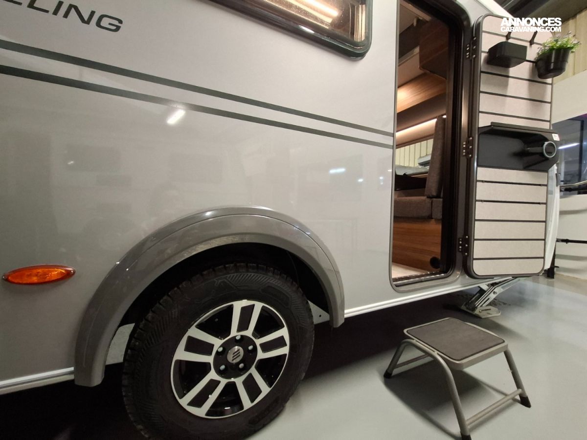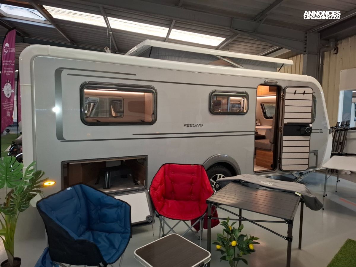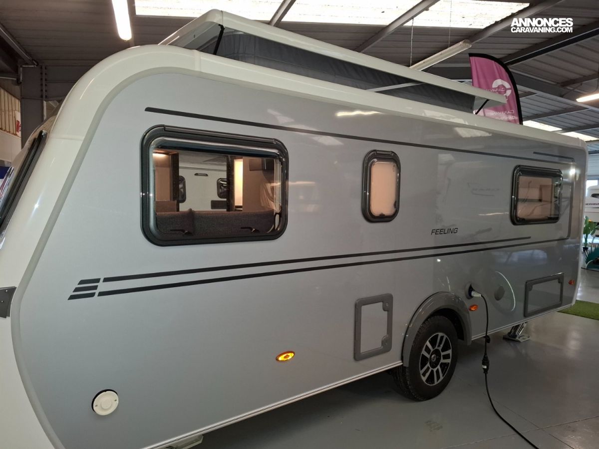 Nouveau design pour l'ERIBA FEELING, caravane aux dimensions compactes et au confort XXL : couchages de grandes dimensions et à l'accès facile, grand réfrigérateur à compression, équipements "douche", chauffage, eau chaude et porte-vélos sur timon. Pour la mise à disposition, nous offrons le store de toit posé. Laissez-vous emporter par la qualité de fabrication, le design chic et sobre et l'ensemble de ses fonctionnalités.