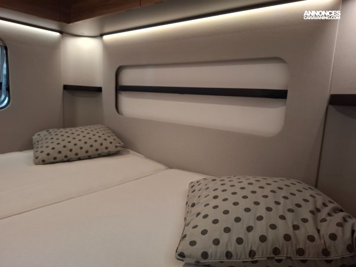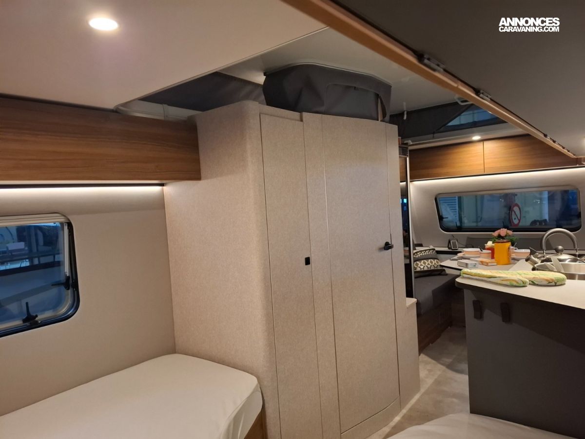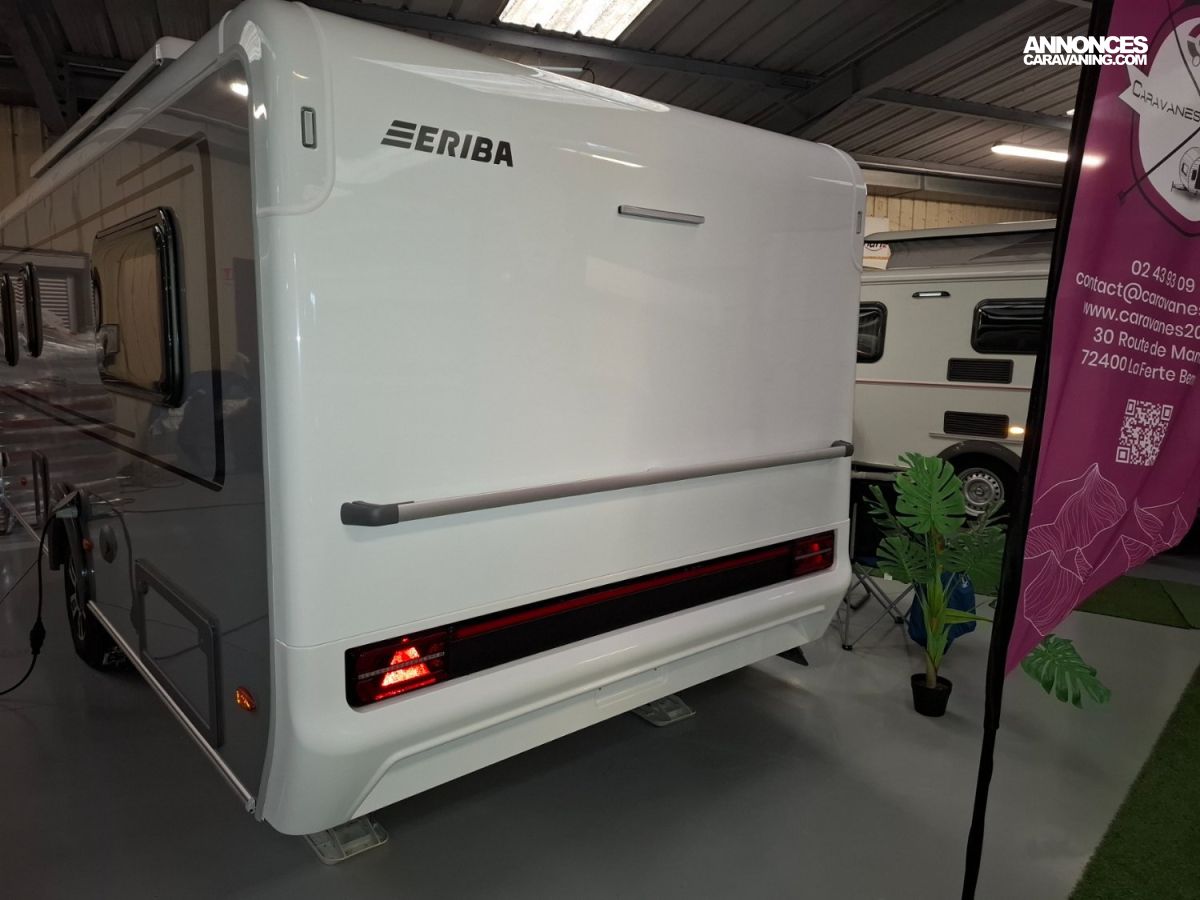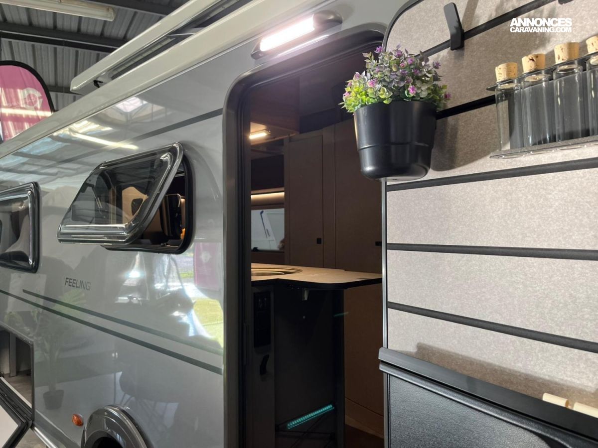Nouveau design pour l'ERIBA FEELING, caravane aux dimensions compactes et au confort XXL : couchages de grandes dimensions et à l'accès facile, grand réfrigérateur à compression, équipements "douche", chauffage, eau chaude et porte-vélos sur timon. Pour la mise à disposition, nous offrons le store de toit posé. Laissez-vous emporter par la qualité de fabrication, le design chic et sobre et l'ensemble de ses fonctionnalités.
