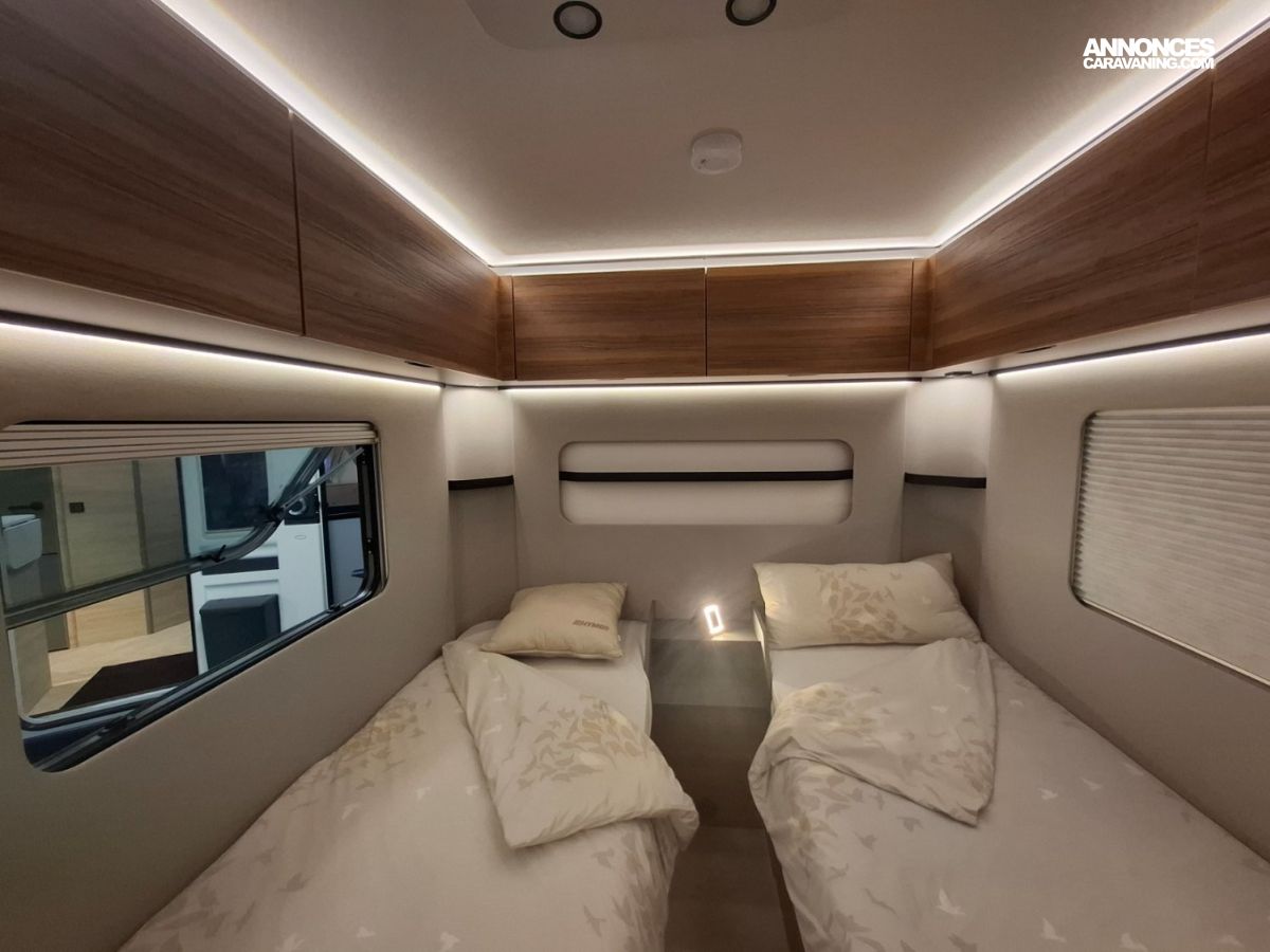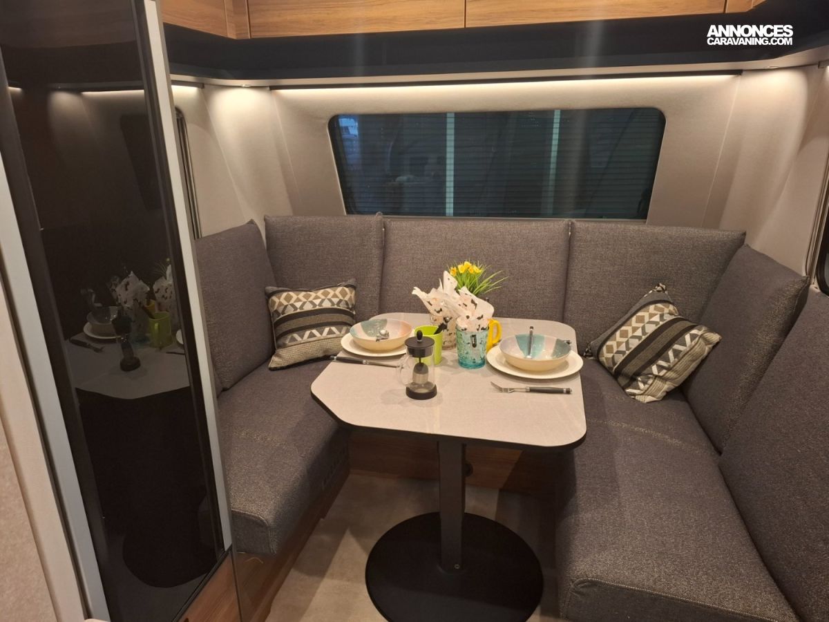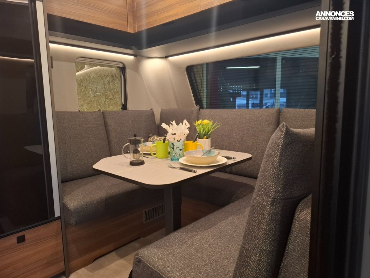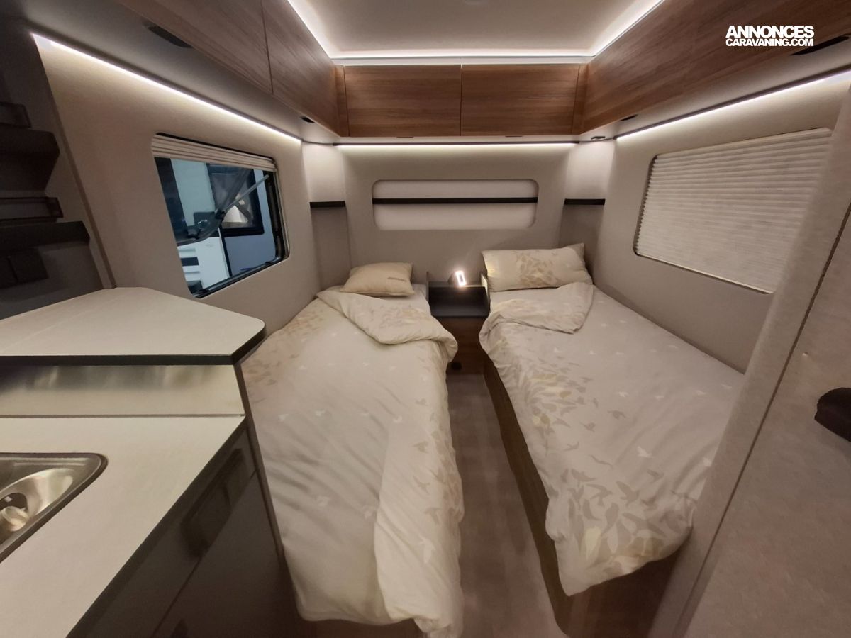 Superbe caravane au design extérieur élégant et à l'ambiance intérieure chaleureuse et confortable., disposant de Lits Jumeaux, d'un grand salon situé à l'avant, d'un grand réfrigérateur à compression, d'un porte-vélos sur flèche, et globalement, d'un excellent niveau d'équipement. Elle sera mise à disposition avec un store de toit posé.