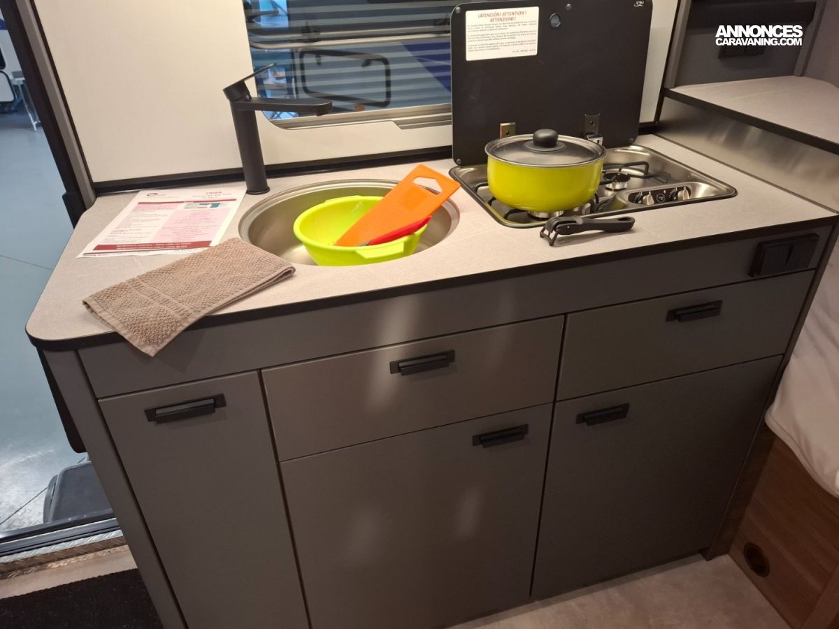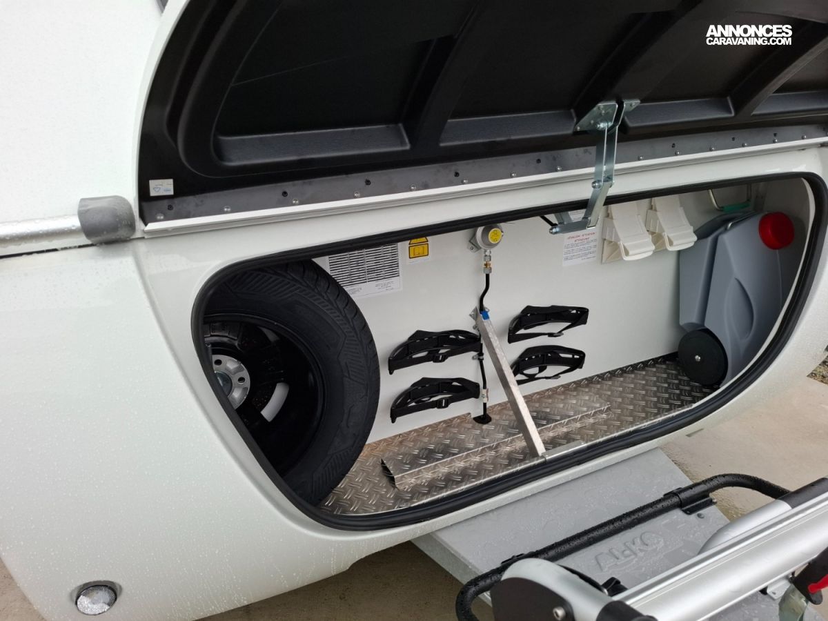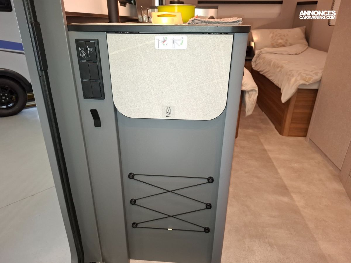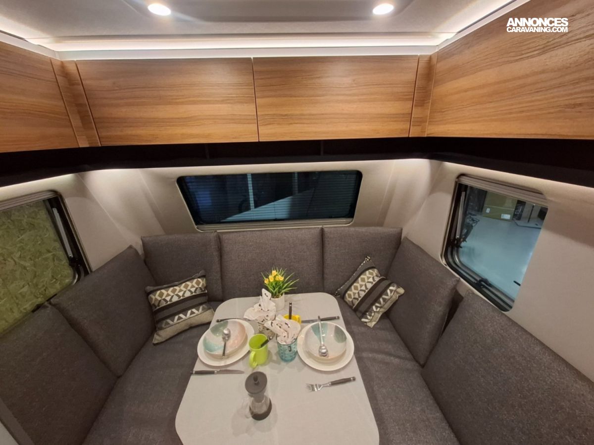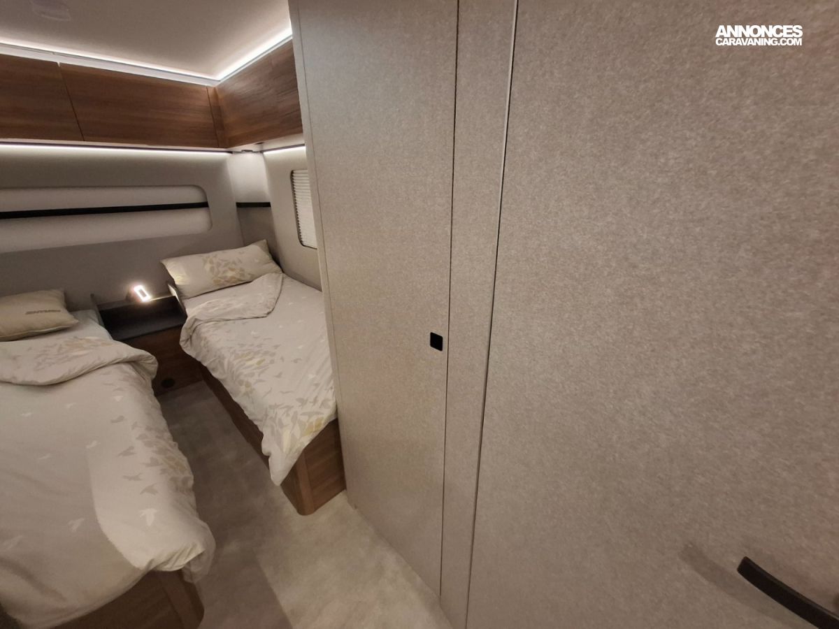 Superbe caravane au design extérieur élégant et à l'ambiance intérieure chaleureuse et confortable., disposant de Lits Jumeaux, d'un grand salon situé à l'avant, d'un grand réfrigérateur à compression, d'un porte-vélos sur flèche, et globalement, d'un excellent niveau d'équipement. Elle sera mise à disposition avec un store de toit posé.
