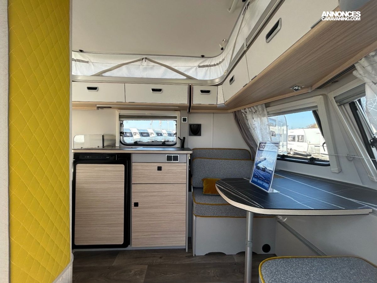 C’est la plus petite caravane ERIBA de la gamme avec son lit fait, sa cuisine et sa petite dînette avant transformable en lit 1 personne.