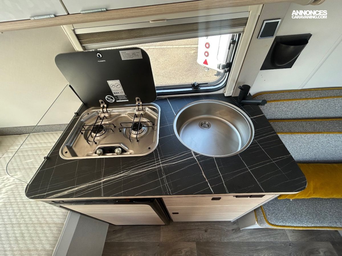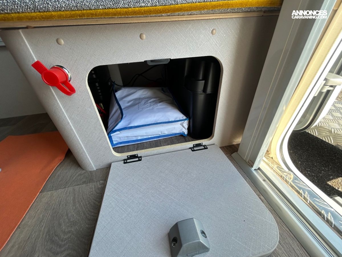 L’avantage de cette caravane d’occasion récente, c’est qu’elle est déjà toute équipée et prête à partir.