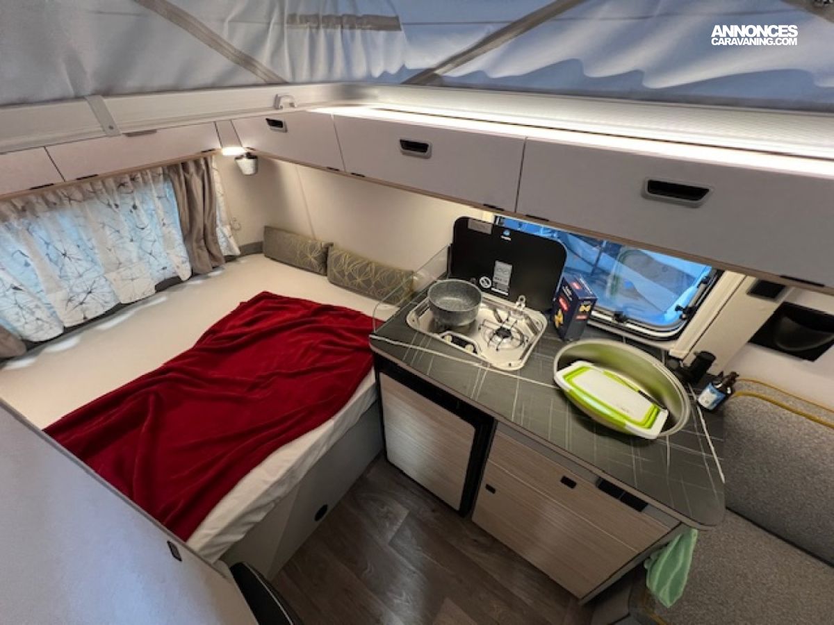 Une très jolie caravane, compacte, super équipée et pleine de peps avec sa carrosserie Nugget Gold et balnche. Elle sera idéale pour vos escapades à 2, et la traction sera facile.