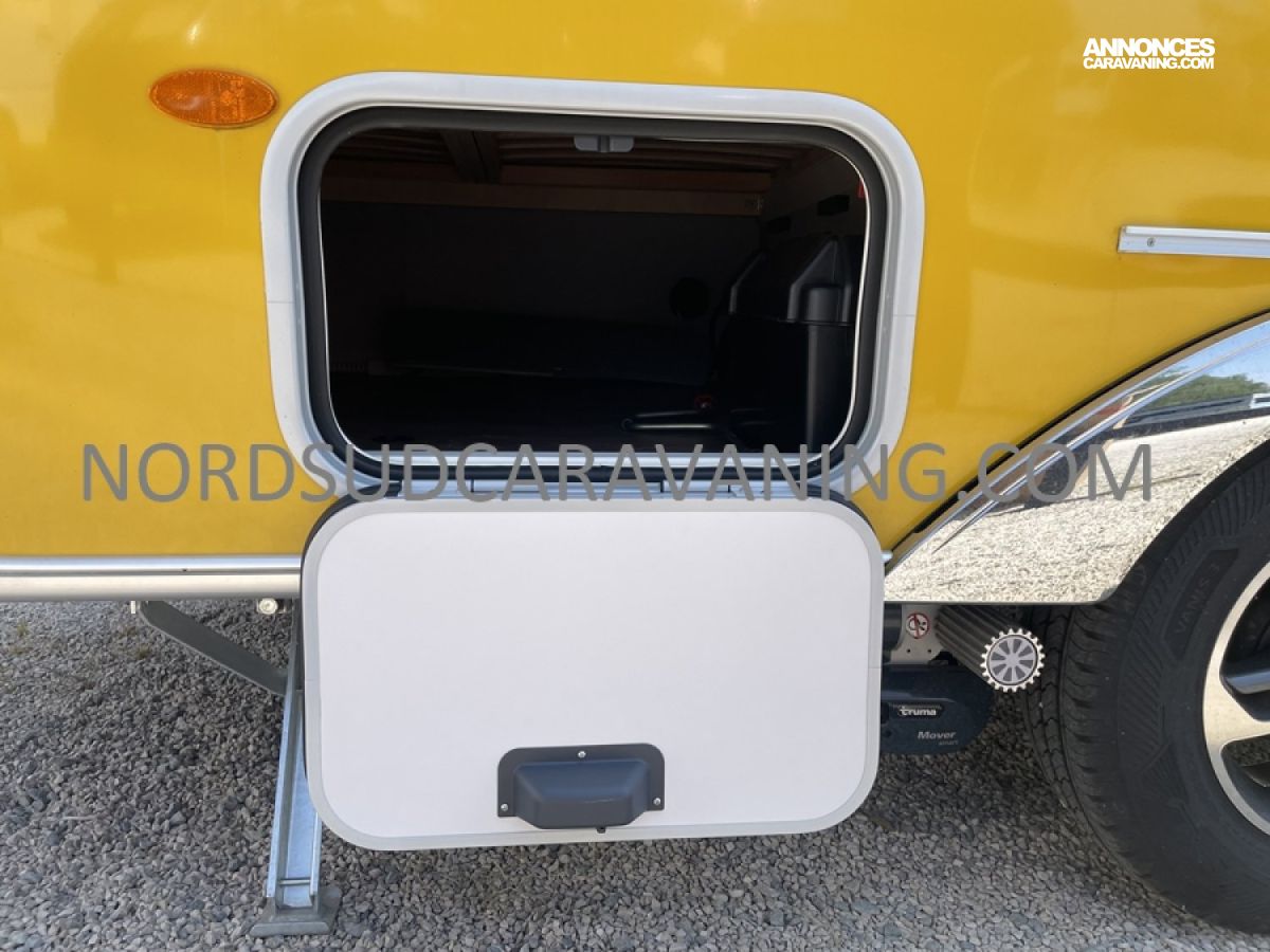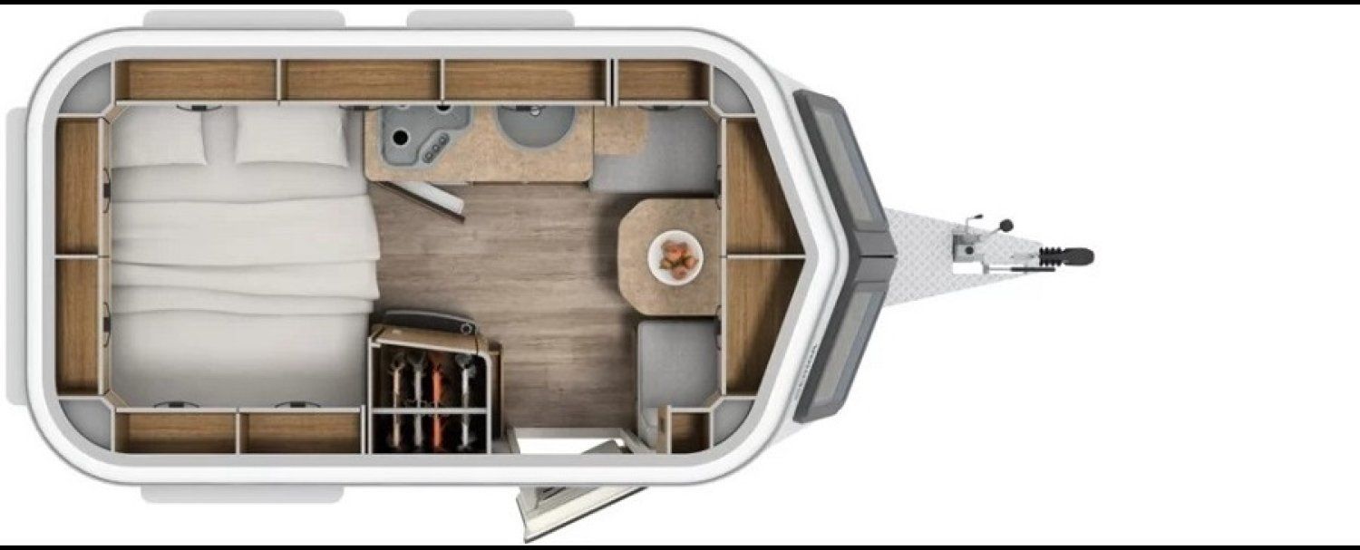 Son atout ? Une caravane utilisable en toute saison, avec son réservoir d'eau hors gel et son chauffage, et itinérante grâce à un gabarit très compact avec seulement 3,71m de longueur extérieure carrosserie !
