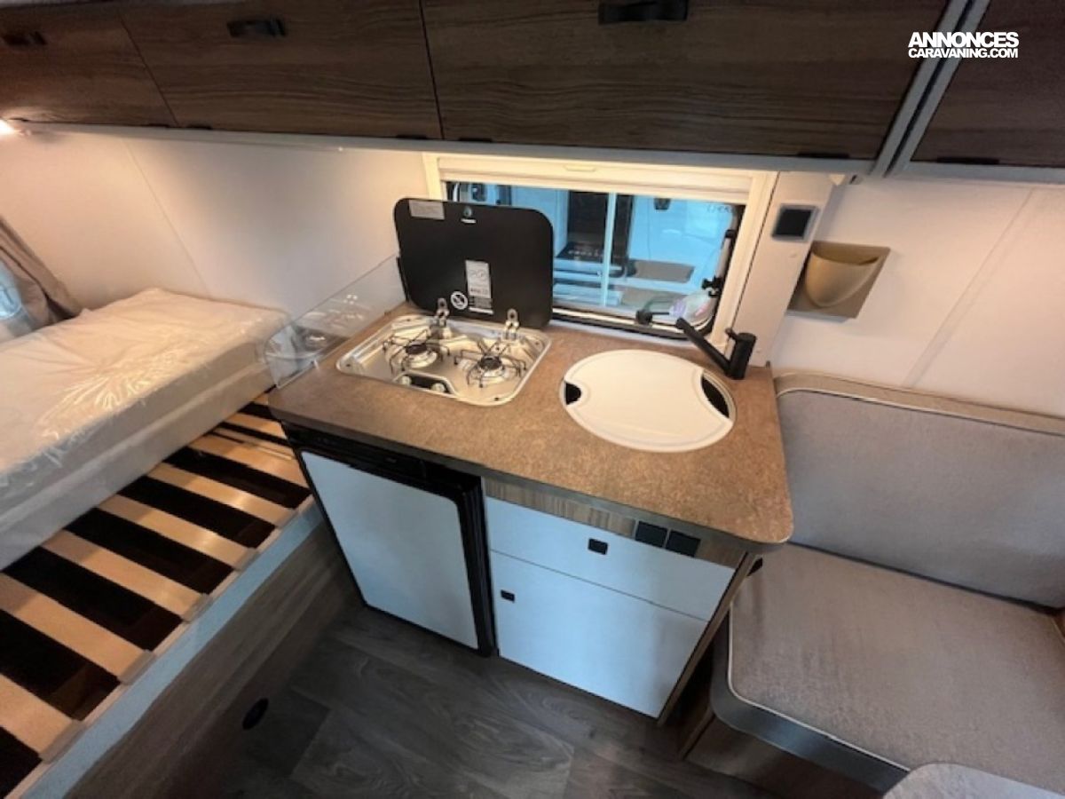 PACK CONFORT : MOUSTIQUAIRE SUR TOUTE LA HAUTEUR DE LA PORTE, POUBELLE INTEGREE A LA PORTE CELLULE, MIROIR SPPLEMENTAIRE, COUVERCLE D EVIER, STORES PLISSES CONFORT, PRISES SUP (2 X 230 V ET 1 X USB DOUBLE)