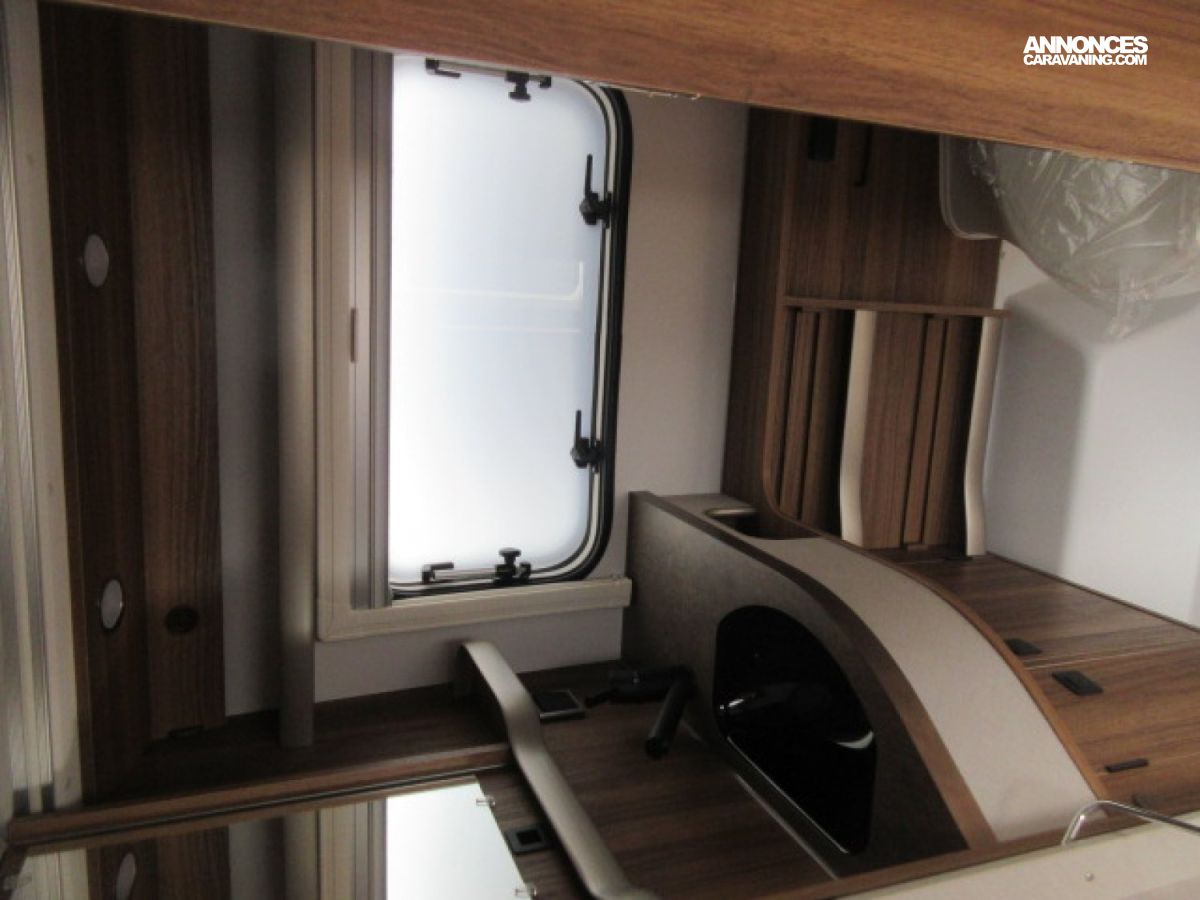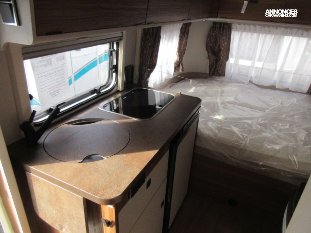 Réchaud 2 feux avec couvercle en verre, Paroi anti-éclaboussures en verre, Compartiment multifonction dans la cuisine assorti aux couleur du séjour, Réfrigérateur à absorption 81 L avec freezer, Chauffe eau, Réservoir d'eau de 30 L , Réservoir d'eau de 12 L dans cabinet de toilette, Chauffage au gaz Truma S 3004