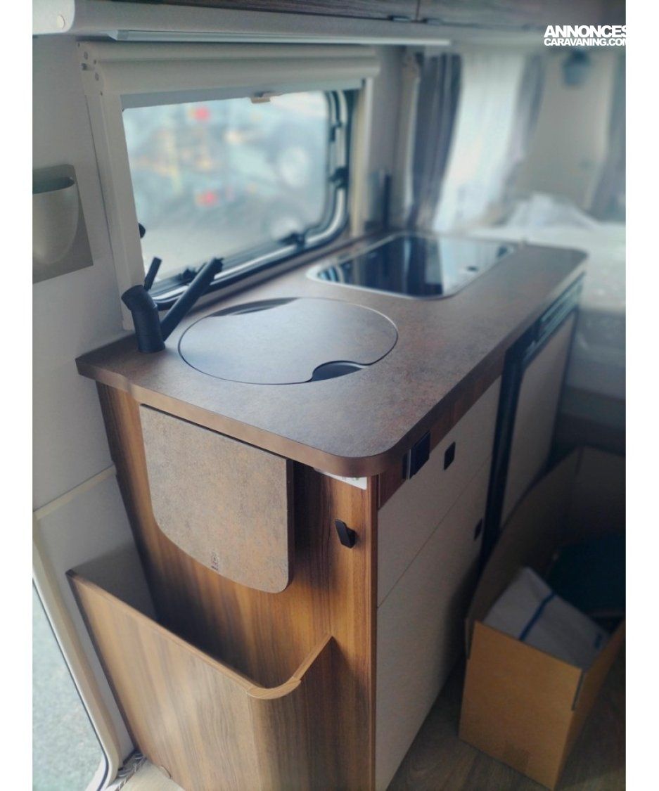 Roue de secours / Trappe extérieure arrière droit /Douchette et rideau de douche / Réservoir eaux propres 30L / Truma therme / coussins supplémentaires pour dinette avant / Pack Chrome / Pack confort