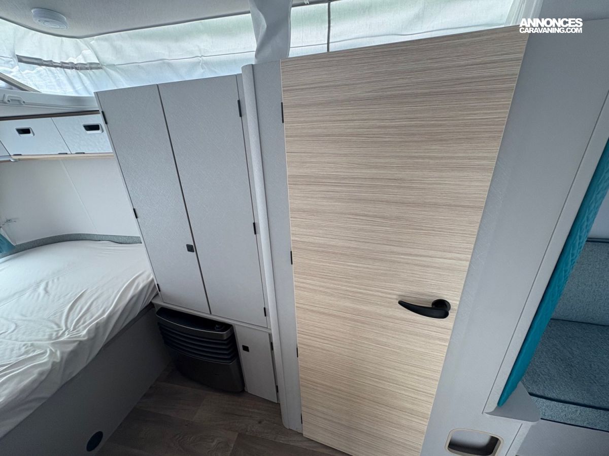 Moustiquaire sur toute la hauteur de la porte à usage facile grâce au guidage latéralStores plissés confortPrises supplémentaires (2 x 230 V et 1 x USB double)Poubelle intégrée à la porte celluleCouvercle d’évier avec planche à découper pour évier en acier inoxydableMiroir grossissant avec fixation magnétique