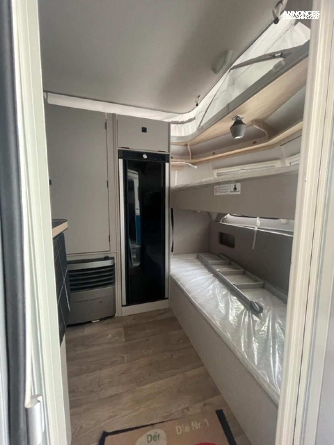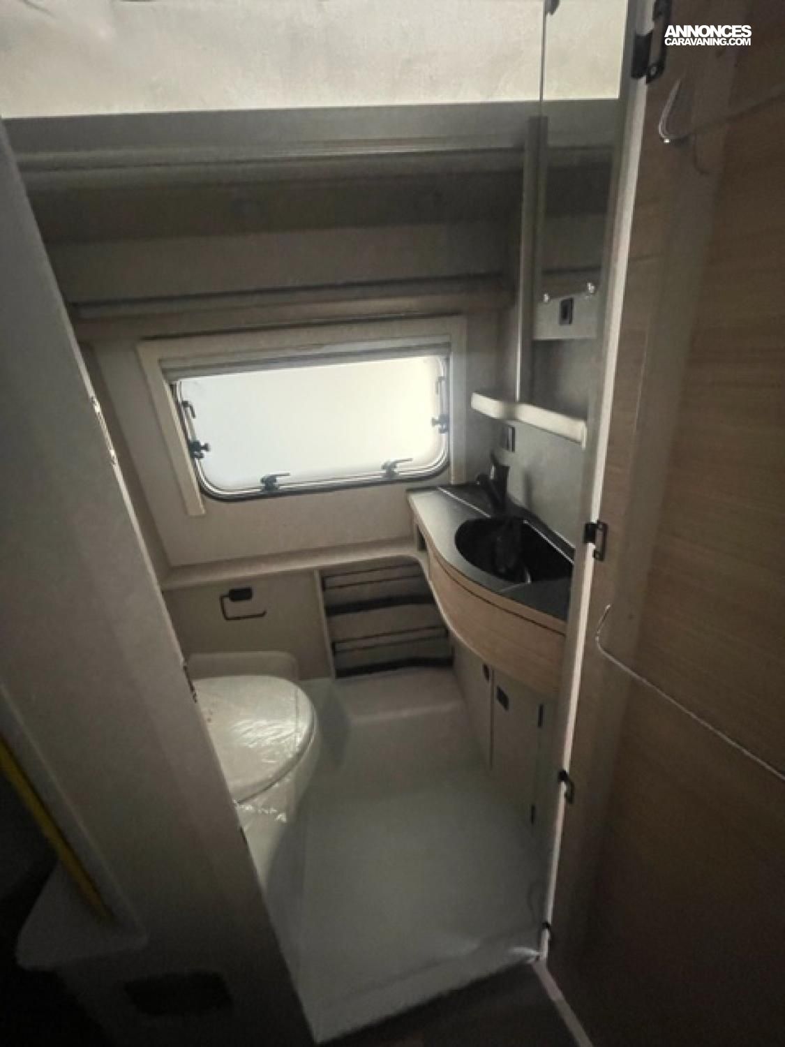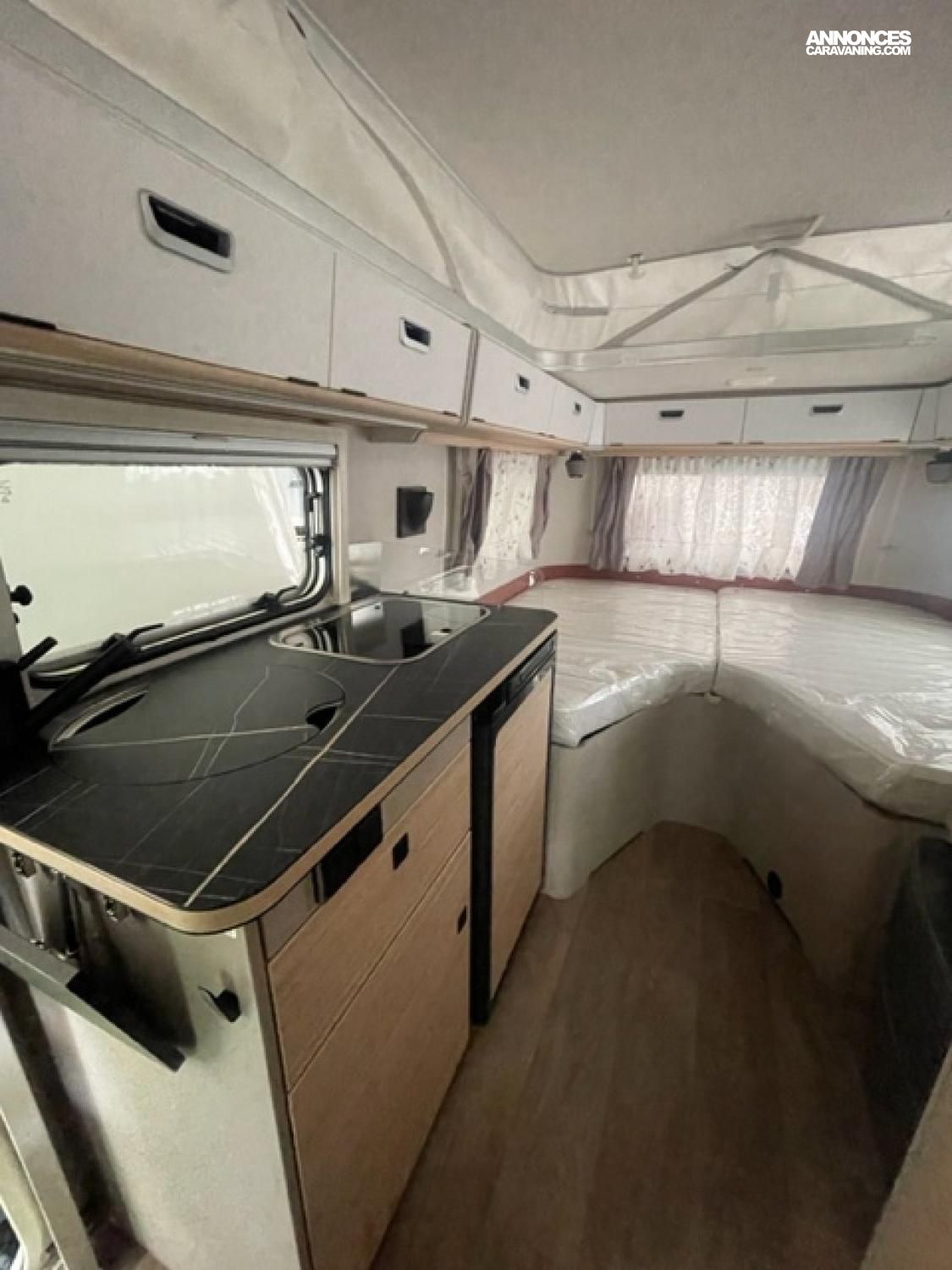 Pack confort (porte moustiquaire à enroulement, stores plissés confort, pack de prises (2 prises 230 V et 1 prise double USB), couvercle d'évier avec planche à découper, poubelle intégrée dans la porte d'entrée, miroir grossissant supplémentaire avec support magnétique)