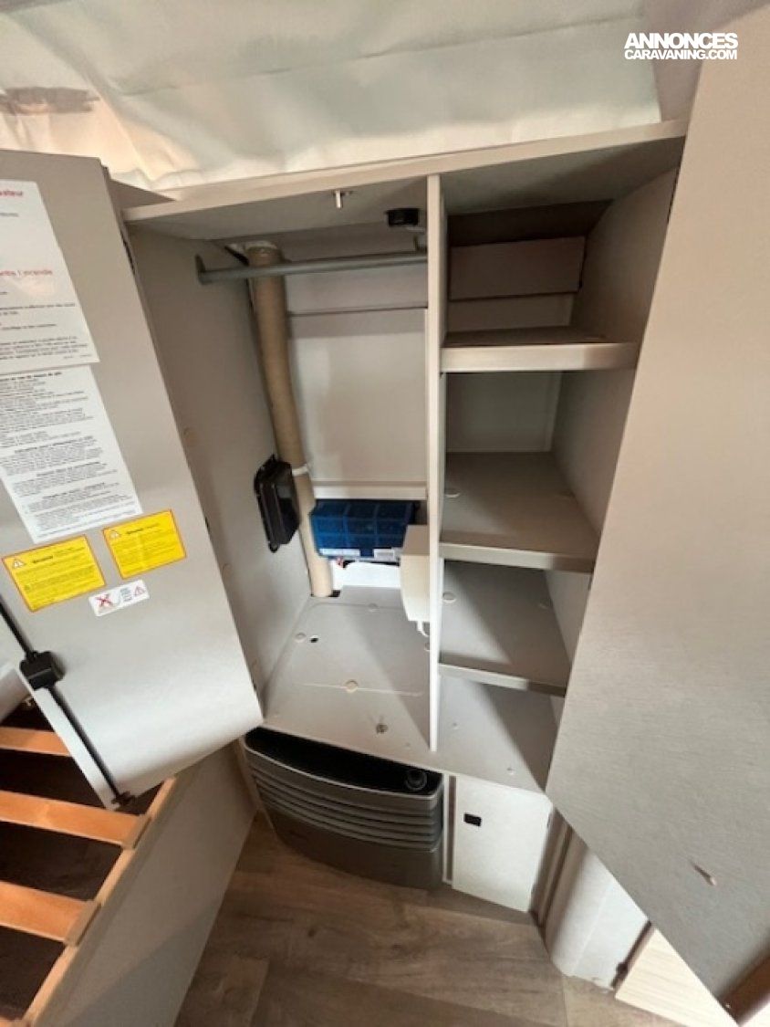 PACK CONFORT : MOUSTIQUAIRE SUR TOUTE LA HAUTEUR DE LA PORTE, POUBELLE INTEGREE A LA PORTE CELLULE, MIROIR SPPLEMENTAIRE, COUVERCLE D EVIER, STORES PLISSES CONFORT, PRISES SUP (2 X 230 V ET 1 X USB DOUBLE)