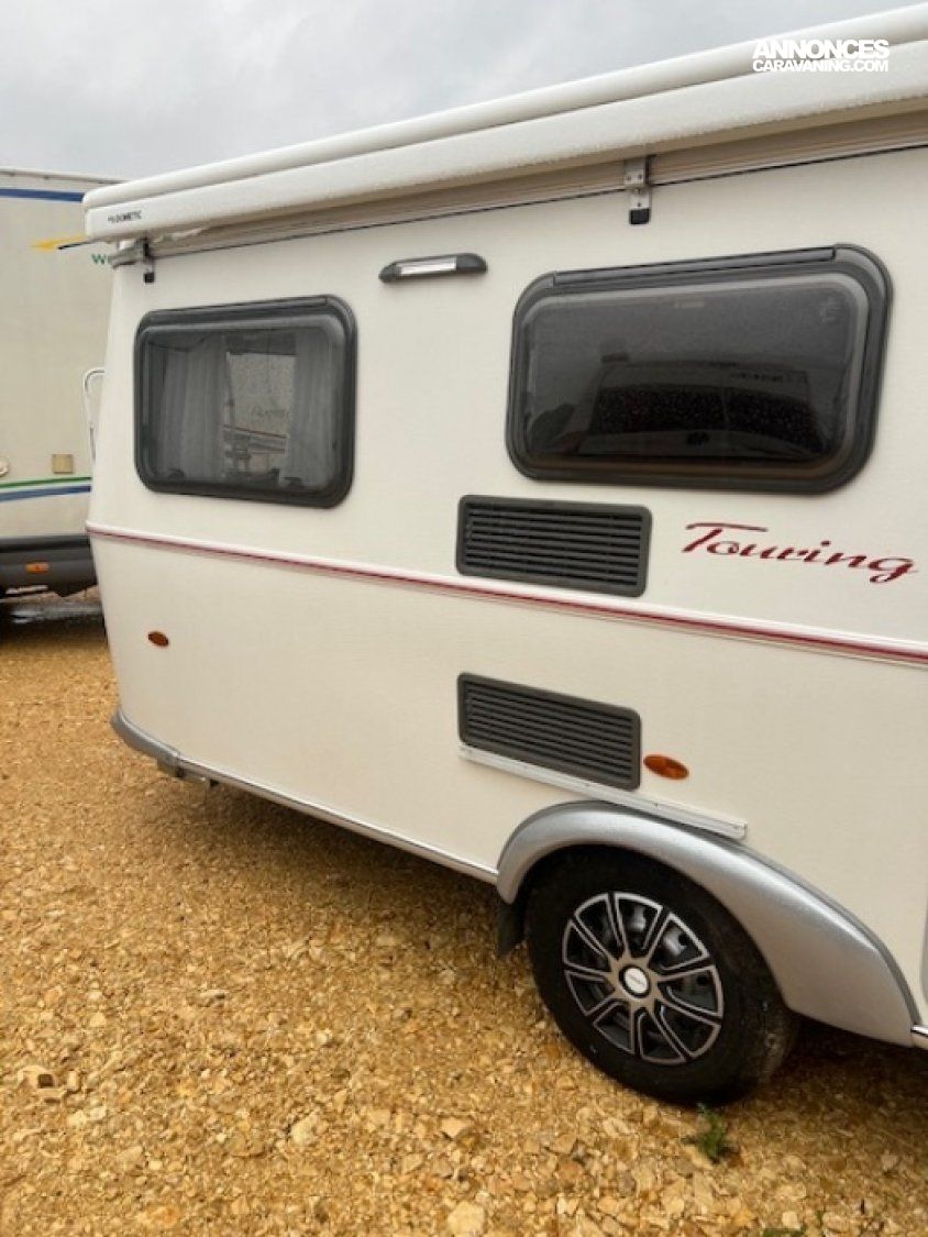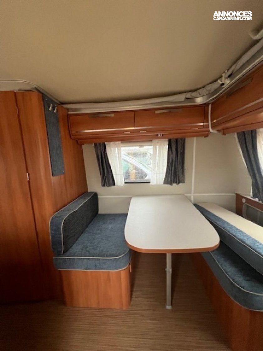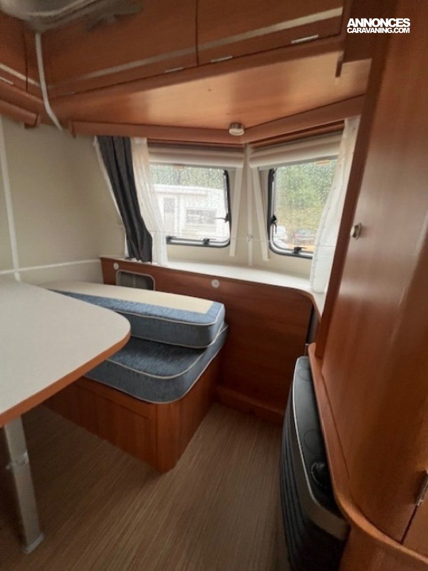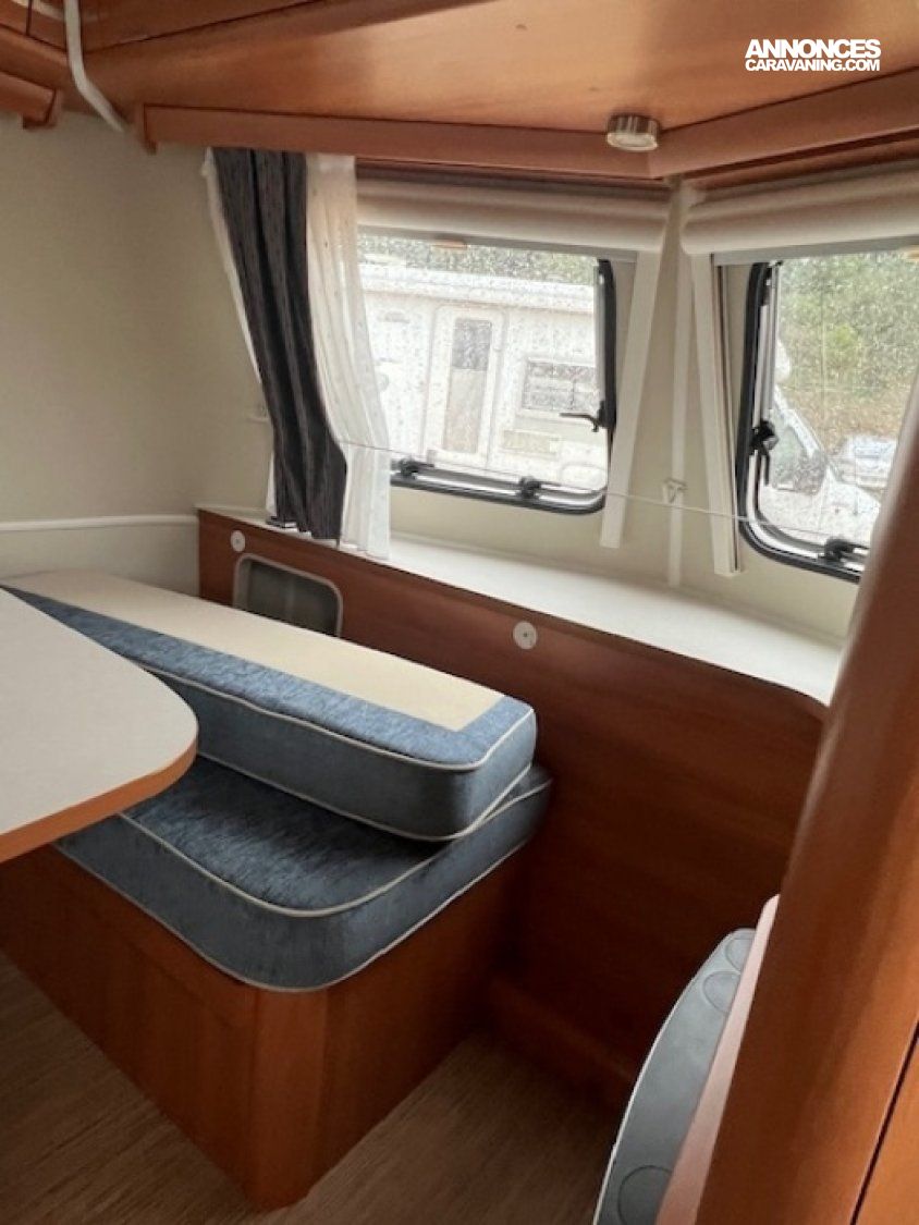 Toit relevable en polyester pour une meilleure résistance à la grêle Toile de toit relevable avec aération et moustiquaire intégrées Marchepied rétractable Baies projetantes avec moustiquaire, store d'occultation et réglable de la ventilation Eclairage LED 12 V Eclairage d'auvent LED avec détecteur de mouvement Eclairage des meubles de pavillon Lit fixe avec sommier à lattes Transformation de la dinette en couchage possible