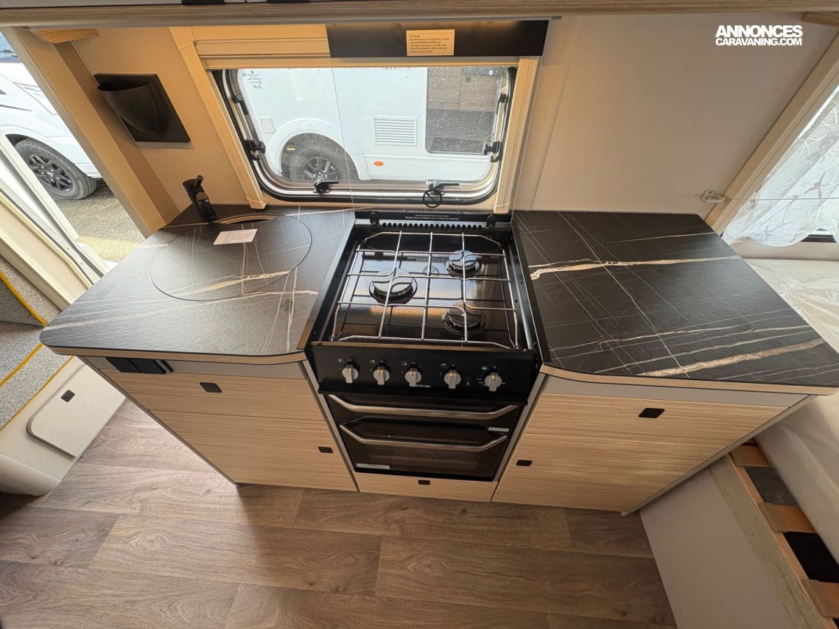PTAC 1T500Roue de secoursPorte-vélosBaie arrière supplémentaireStore extérieur 3m50Trappe de soute gauche et droitePack doucheFour et 3 plaques gazTruma Combi 4EDraps housseCoussins confort dinette avant