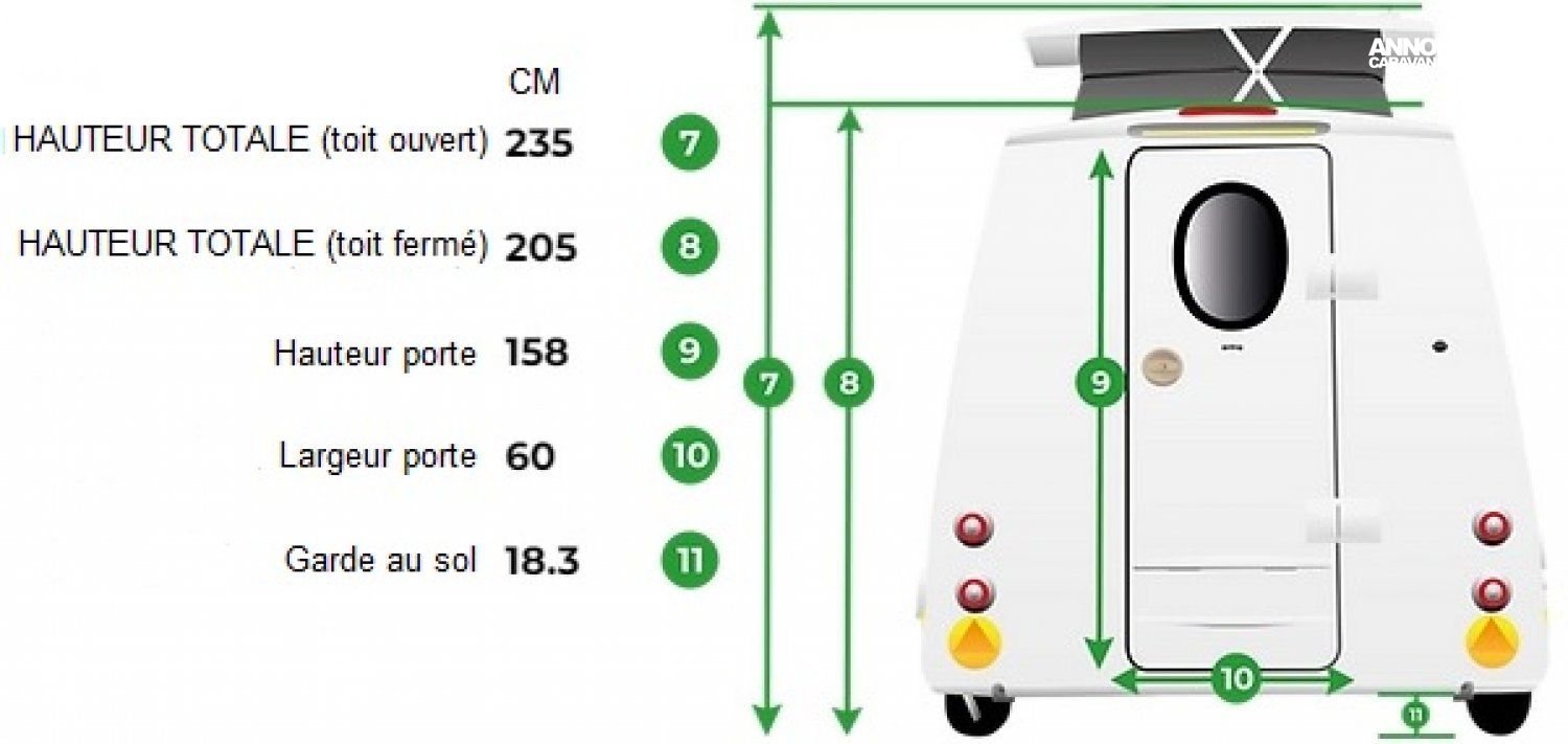 - Toit relevable ventilé – Porte d’entrée à l’AR