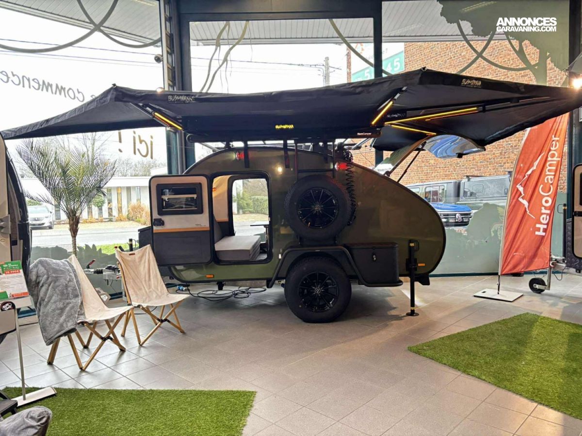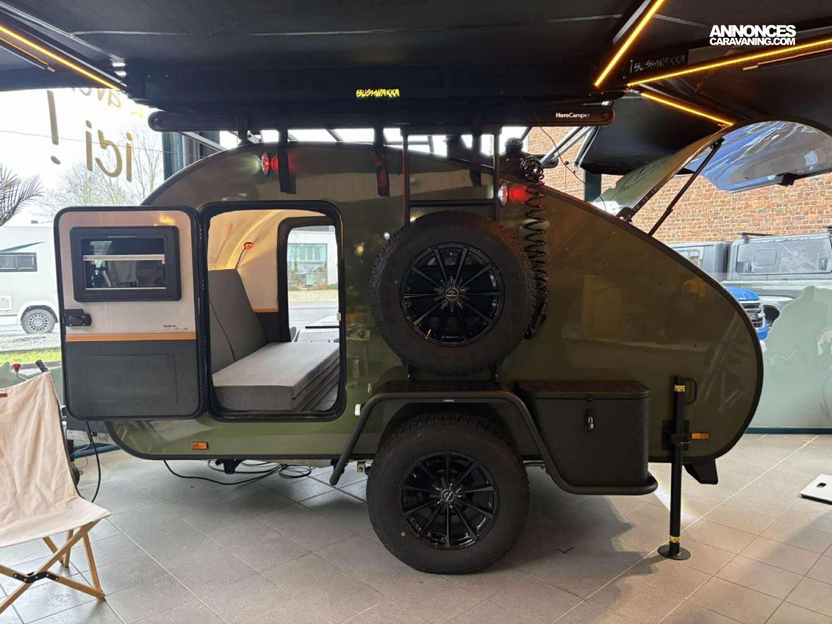 Cette HeroCamper Armstrong est visible en exposition aux côtés d’autres modèles de caravanes offroad et teardrop. Nous vous conseillons avec plaisir en fonction de votre projet d’aventure, de votre véhicule tracteur et de votre budget.