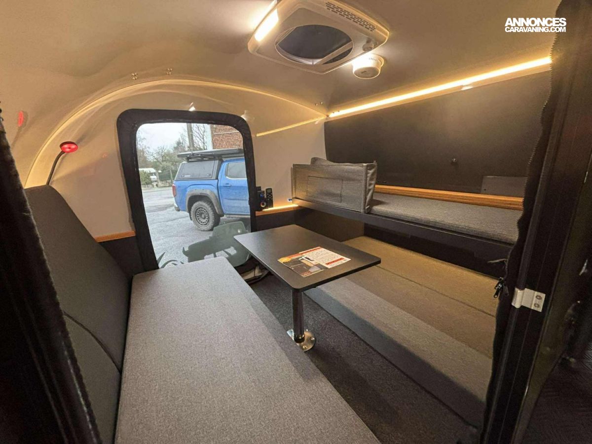Personnalisation possible. Grâce à notre atelier spécialisé, il est possible d’ajouter d’autres accessoires sur mesure, notamment une tente de toit pour créer un couchage supplémentaire, ainsi que divers équipements adaptés à votre manière de voyager.
