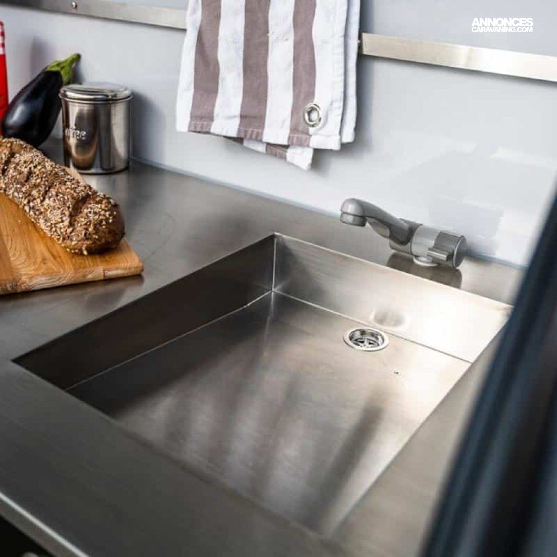 - Comptoir de cuisine en acier inoxydable avec évier et robinet intégrés