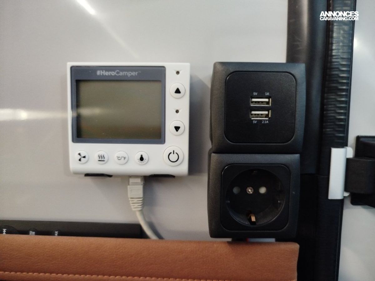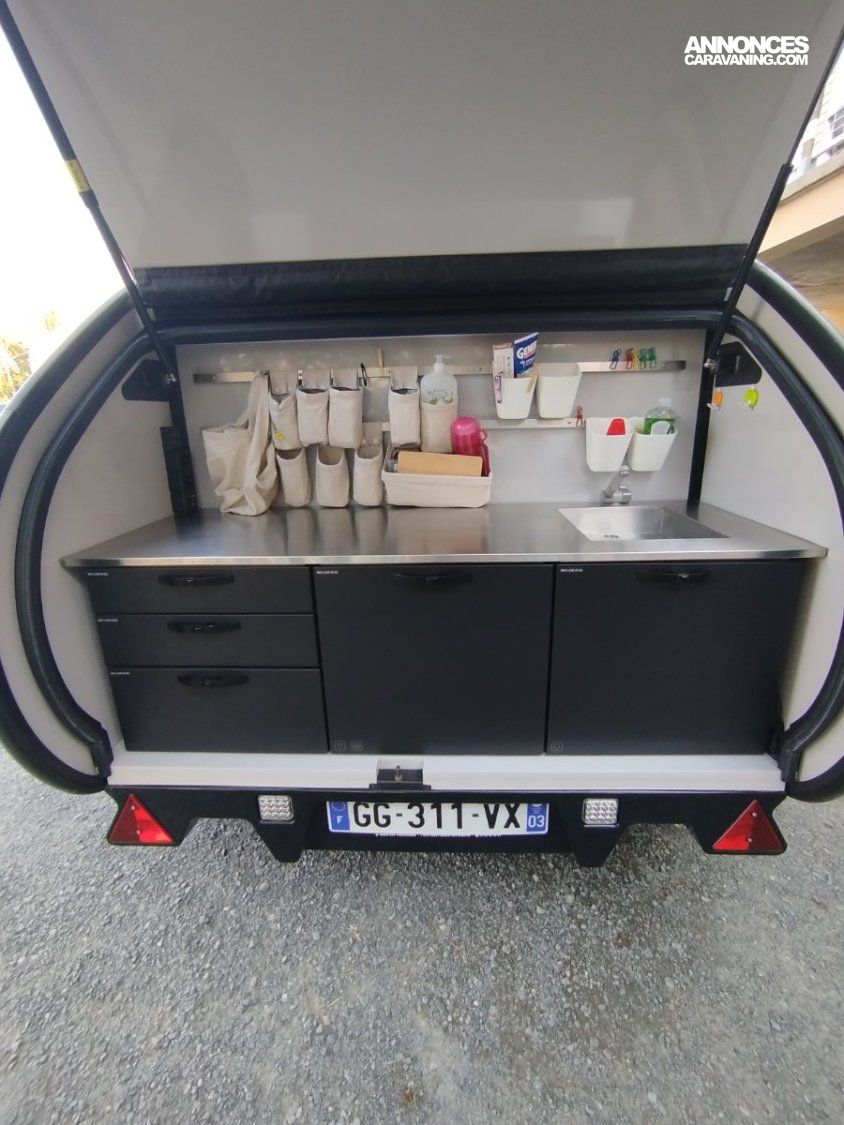 - cuisine équipée: petit frigo de 15l, évier, réservoir d'eau propre 30l, plan de travail