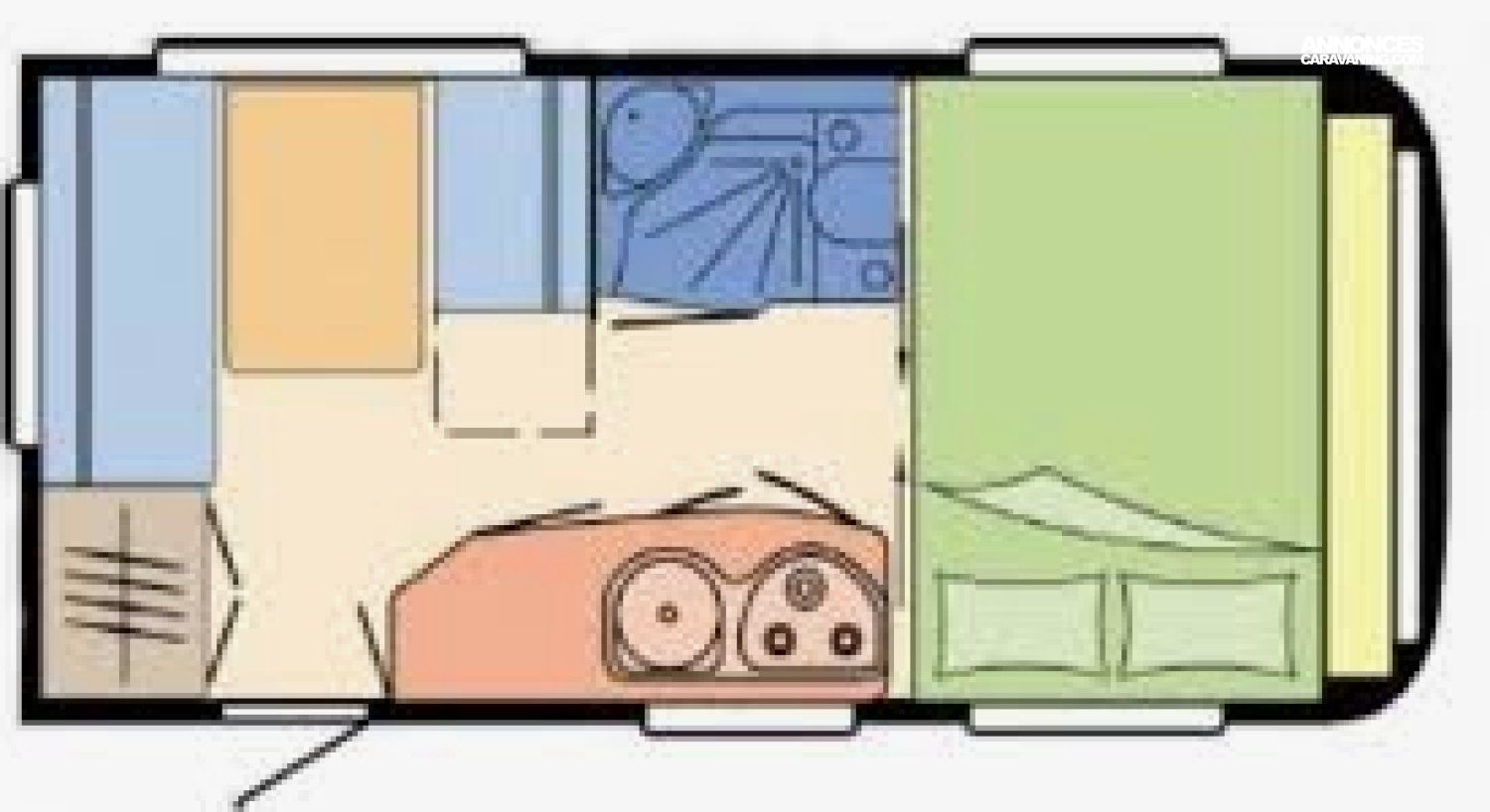 5.24m x 2.3m - Nbre de Couchages