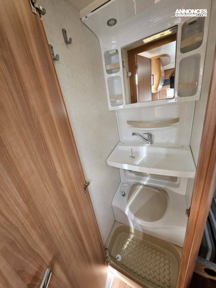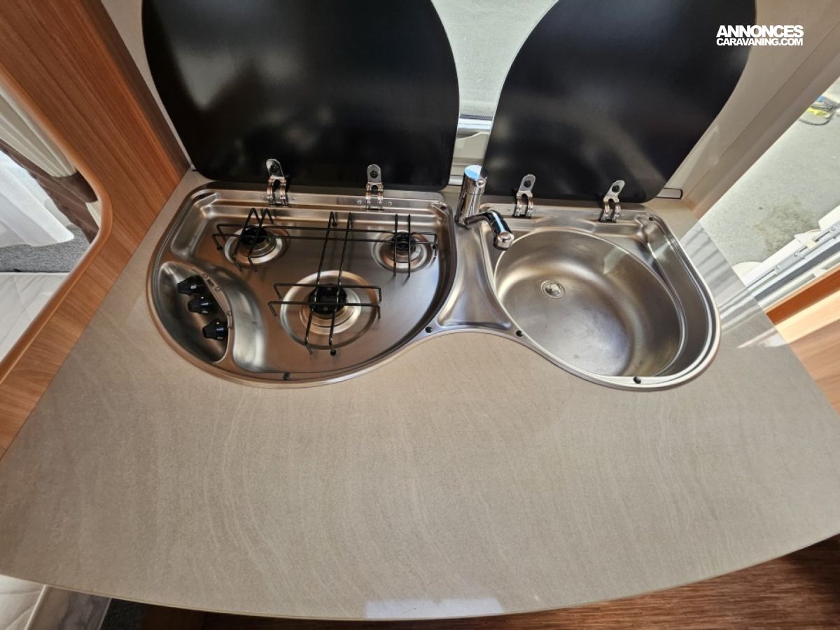 Salle de bain avec WC à cassette - lavabo rabattable - miroir - penderie - lit pour 2 personnes transversal + dinette transformable en lit pour 1-2 personnes – penderie - (la chambre peut être fermée. Dans la partie arrière, banquette rapidement repliable en lit pour 1-2 personnes Cuisine avec réfrigérateur, freezer 112 l / tri-mixte - évier en acier inoxydable et gazerie 2 feux - électricité 12V / 220V - Réservoir d eau propre avec pompe 12V – Réservoir d’eau usée - espace de rangement - Chauffage au gaz Trumatic avec soufflerie - Stores occultant + moustiquaires sur toutes les fenêtres + portes cellule - Chauffe-eau Truma