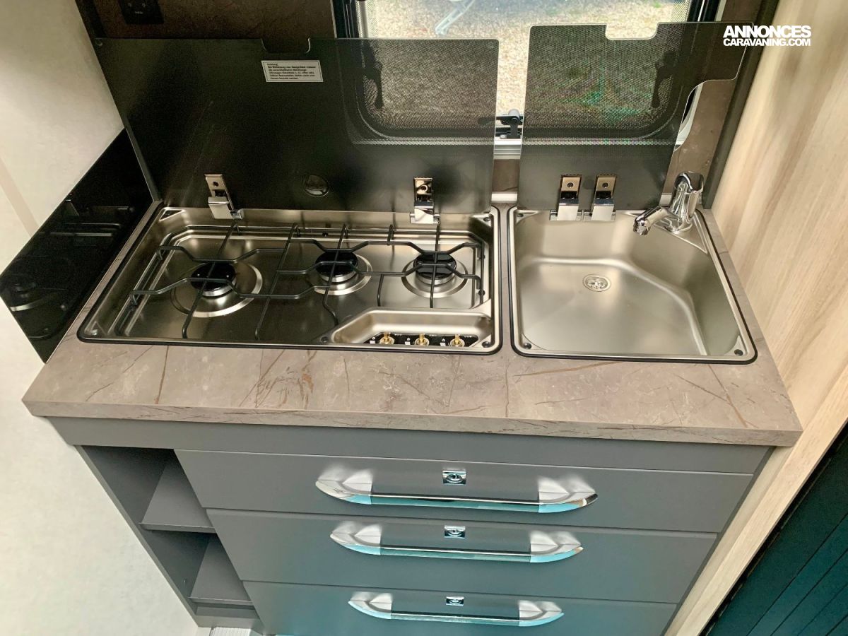 Évier inox et 3 bruleurs gaz