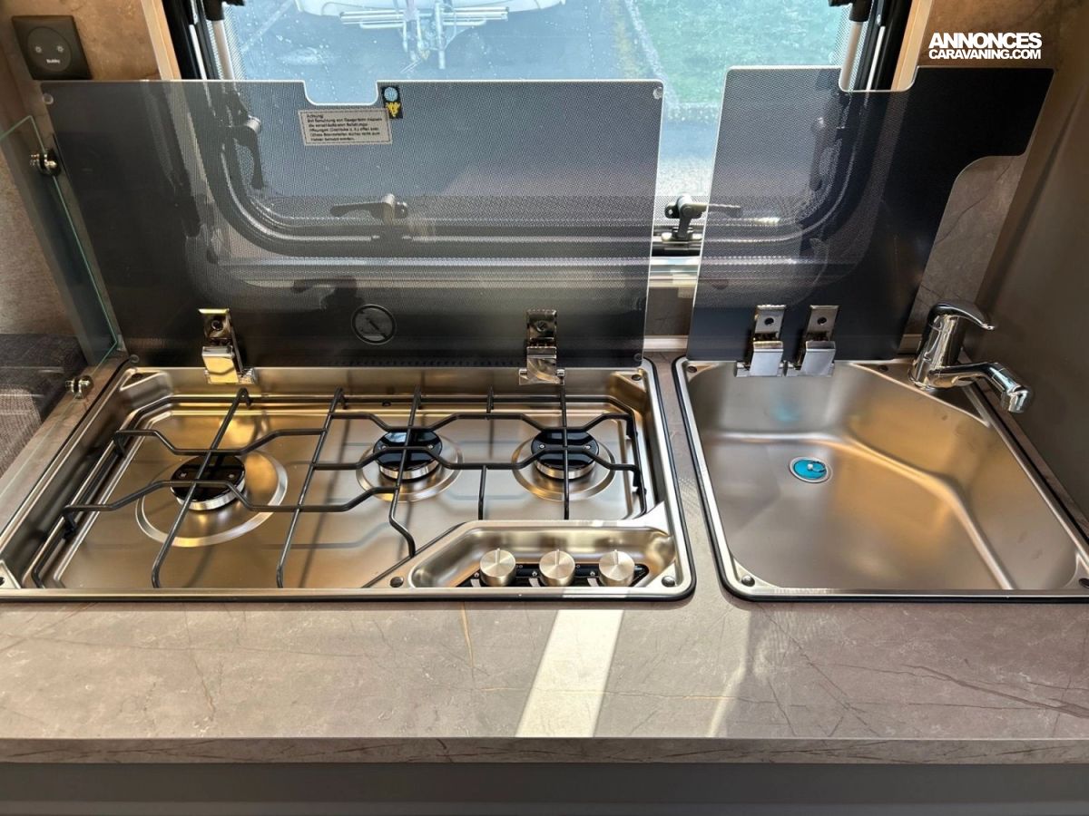 double butée, à absorption, Réchaud et évier en inox, avec 3 feux,