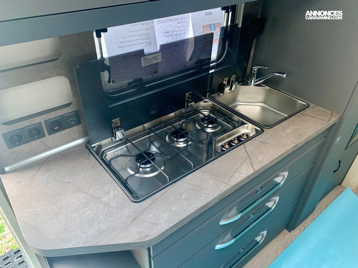 Nouveau Combiné réchaud ,évier inox et 3 feux , Grand réfrigérateur , toutes les baies ouvrantes avec combi stores moustiquaires ,Grand lanterneau panoramique, Éclairage d’ambiance dans habitacle, Éclairage extérieur, Porte d’entrée avec des rangements et baie intégrée + moustiquaire de porte complète .