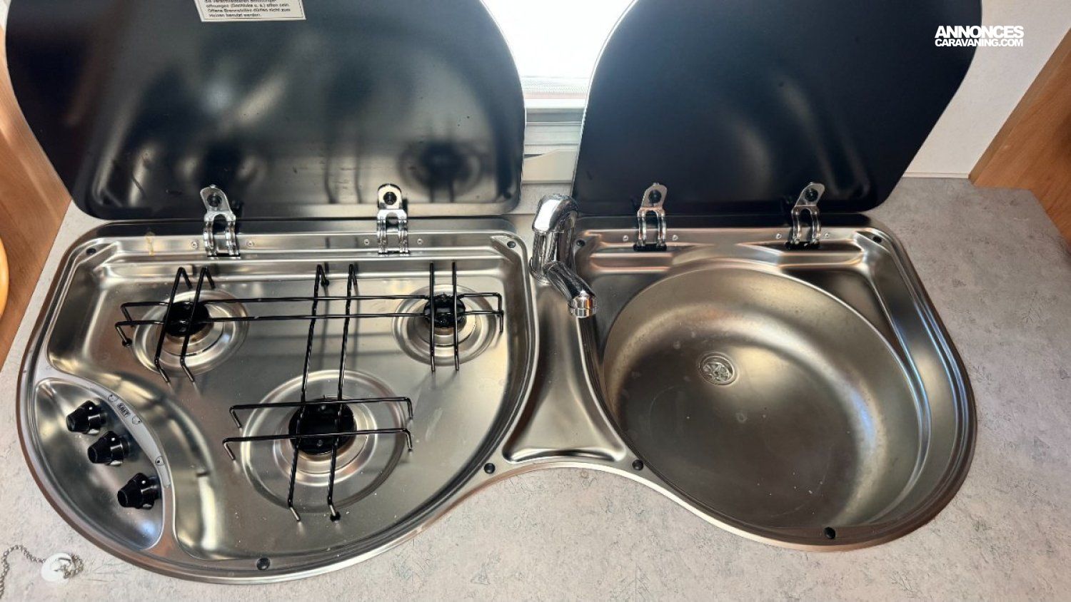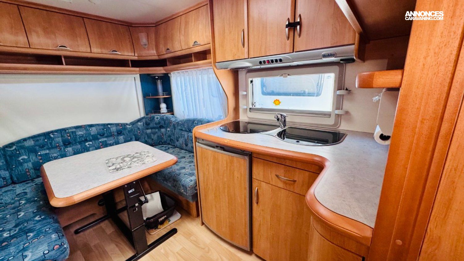 Nous vendons notre caravane de marque Hobby exellent easy 460, dans un excellent état, toujours garée sous abri. Chauffage à gaz Truma avec option air pulsé, douche, toilette à cassette, évier, cuisine, frigo trimixt 220v-12v ou gaz, bec à gaz, véritabe lit 2 personnes de 140x190 + couchette banquette transformable en lit 2 personnes, télévision ecran plat (pour lecteur DVD/bluray). Store et moustiquaire à chaque baie vitrée+porte d'entrée, stabilisateur anti-lacet (tenue de route optimale), nombreux rangements, roue de secours, bouteille de gaz quasi pleine. Store banne avec son auvent + 1 auvent 4 saisons en PVC de 5x3m+ 1 chambre supplémentaire, table, 4 fauteuils, toute la vaisselle et literie (prête à l'emploi). La caravane est en gardiennage à Laroque-des-Albères (15 min d'Argeles) et payé jusque Août 2026.