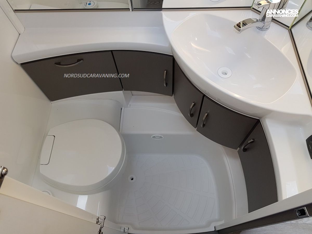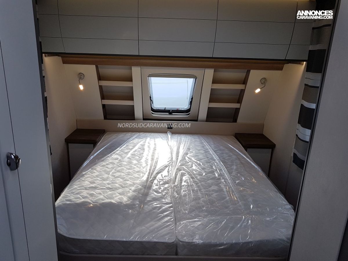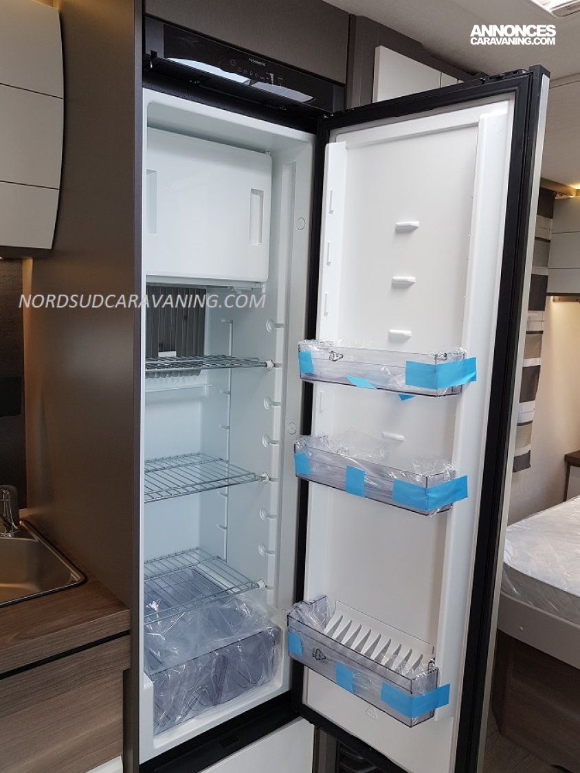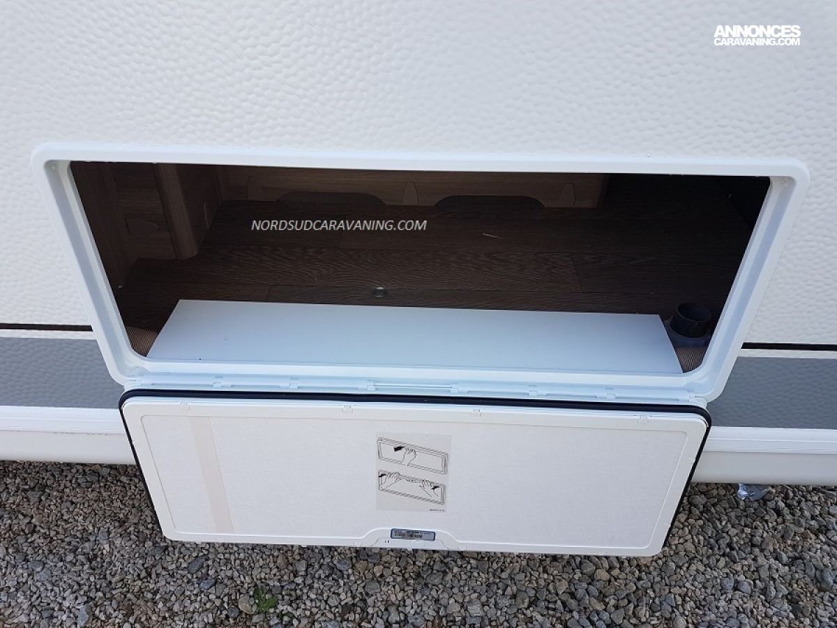 Cette superbe caravane est dotée d’un joli salon en U spacieux et convivial pour en profitez en couple, en famille ou entre amis. Il est transformable en couchage pour deux personnes. Son lit central vous permettra de profiter d'un espace de repos confortable facilement accessible des deux côtés et avec de multiples espaces de rangement. Sa cuisine équipée d’un réchaud 3 feux, d’un évier, d’un réfrigérateur congélateur avec double ouverture, qui ravira le cuisinier ou la cuisinière. Elle dispose également d'une salle de bain compacte, équipée d’un WC, d'un lavabo et d'un bac de propreté qui vous apportera un maximum de confort.