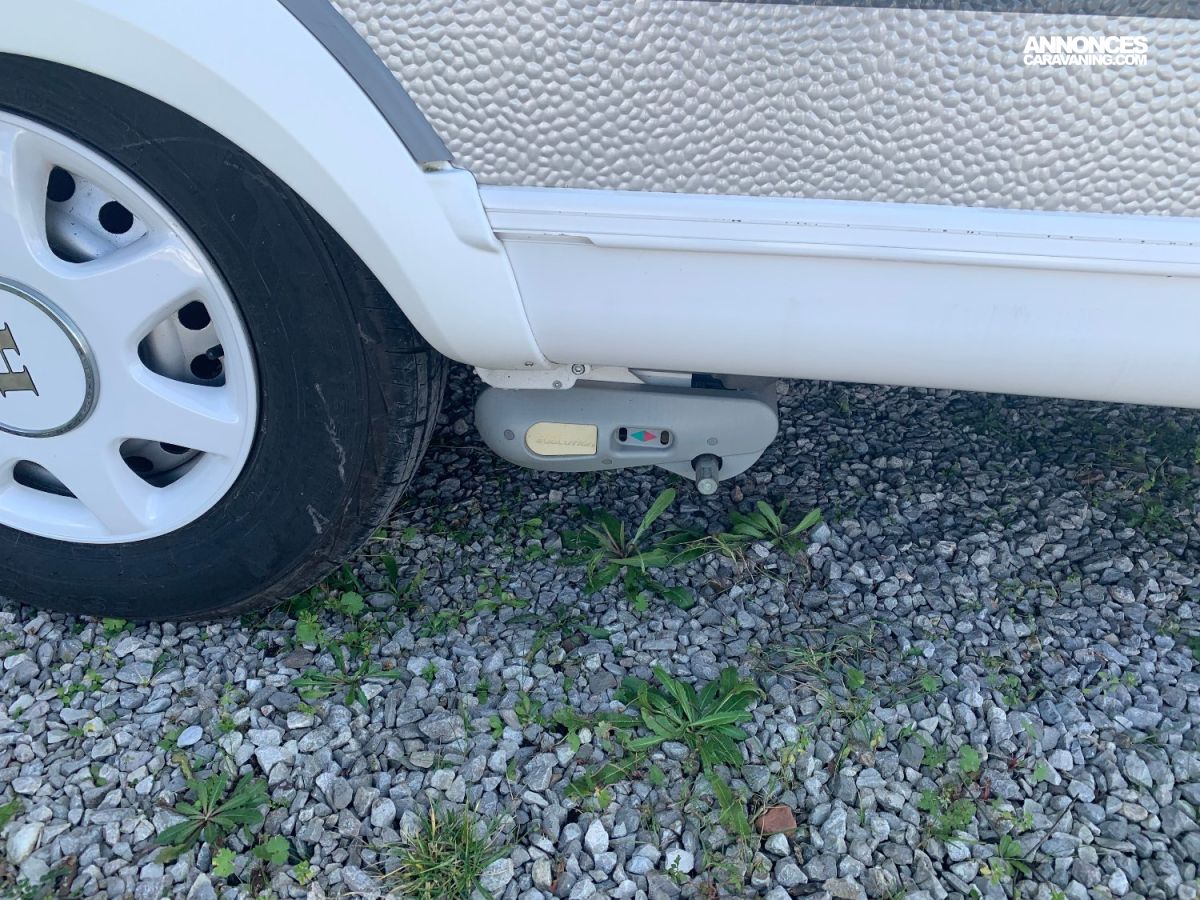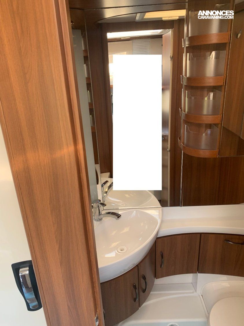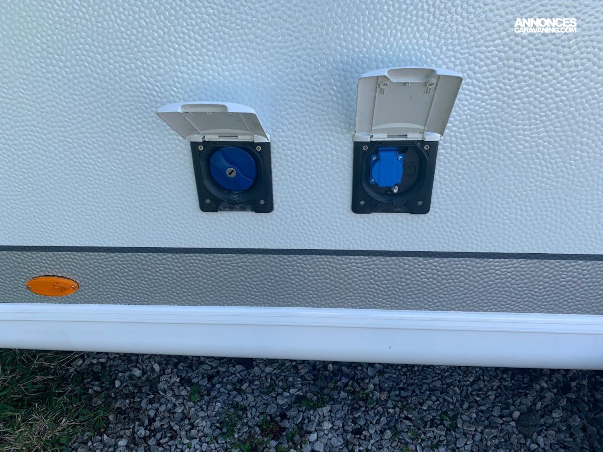 Réservoir d'eau propre fixe avec un indicateur de niveau et un réservoir d'eau usée à roulettes.