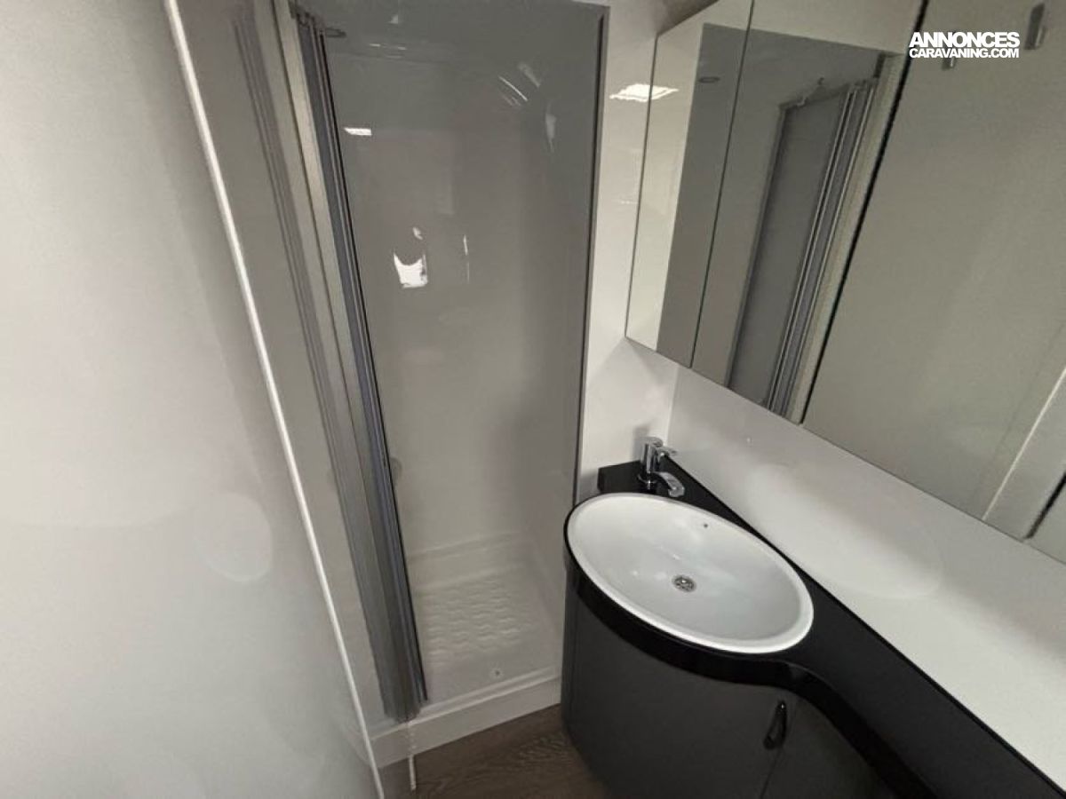 Bac de douche, Cabinet de toilette avec lavabo, Cuisine en long, Lit à la Française, Lit dînette, Salon en U avant, Soute, WC cassette.