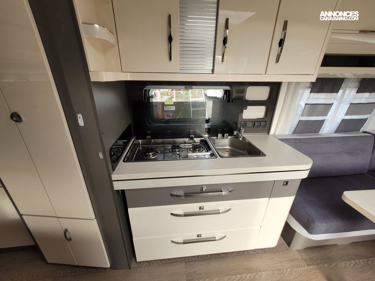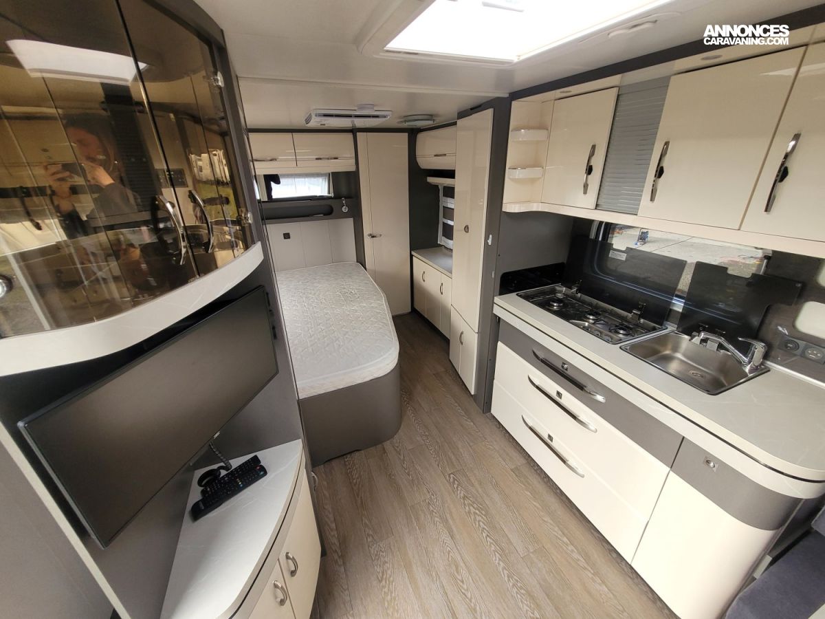 Anti-lacets, Chauffe-eau, Chauffage GAZ COMBI 6, Amortisseurs, Cache-flèche, Roue de secours, Lumière extérieure, Refrigérateur 150 L trimixte, Store extérieur, Moover automatique, Antenne automatique, TV