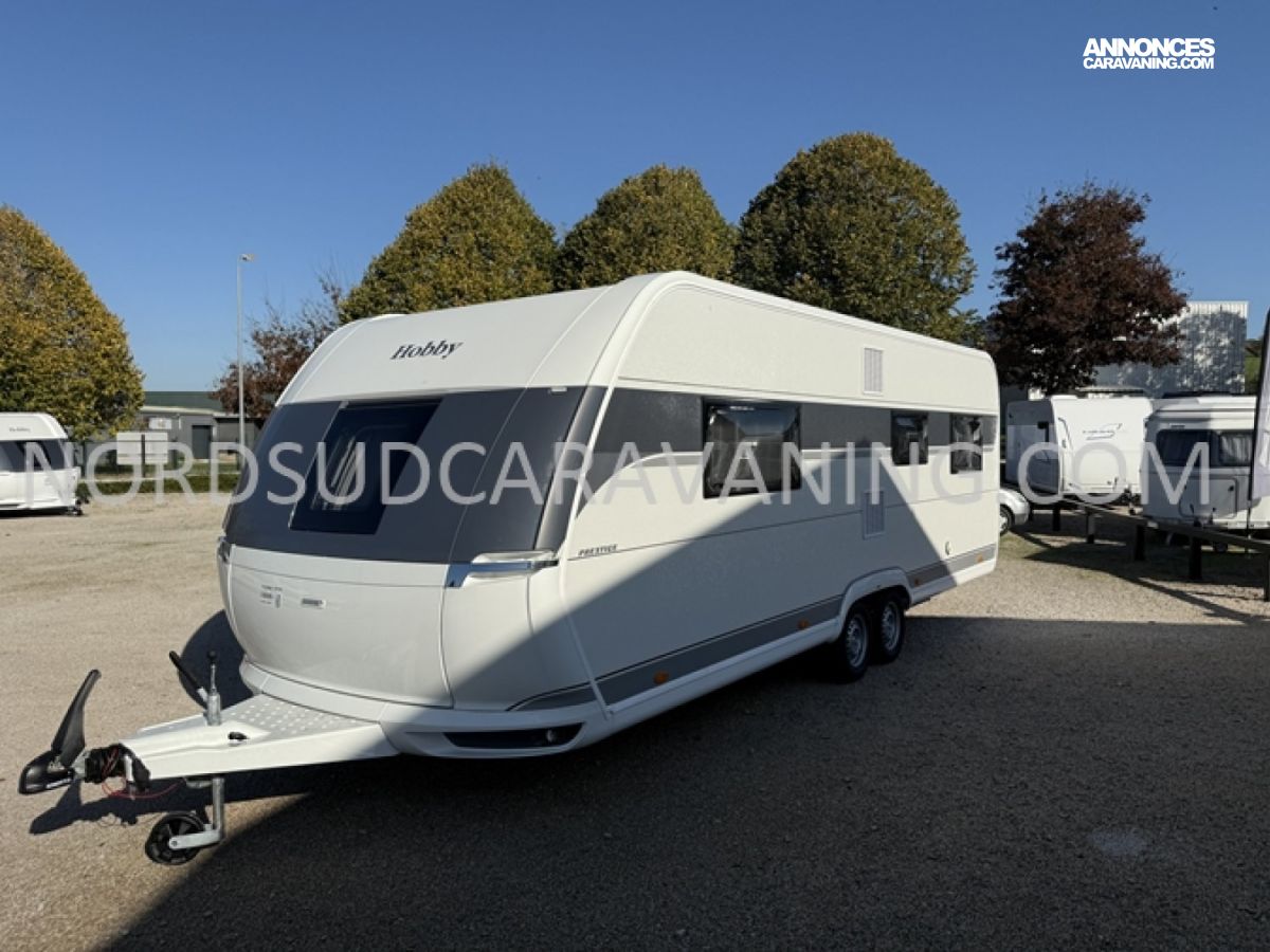 Caravane haut de gamme HOBBY Prestige 650 UFF, Double essieux, Spacieuse, Lit central, Salon en U, Douche indépendante, Tout confort