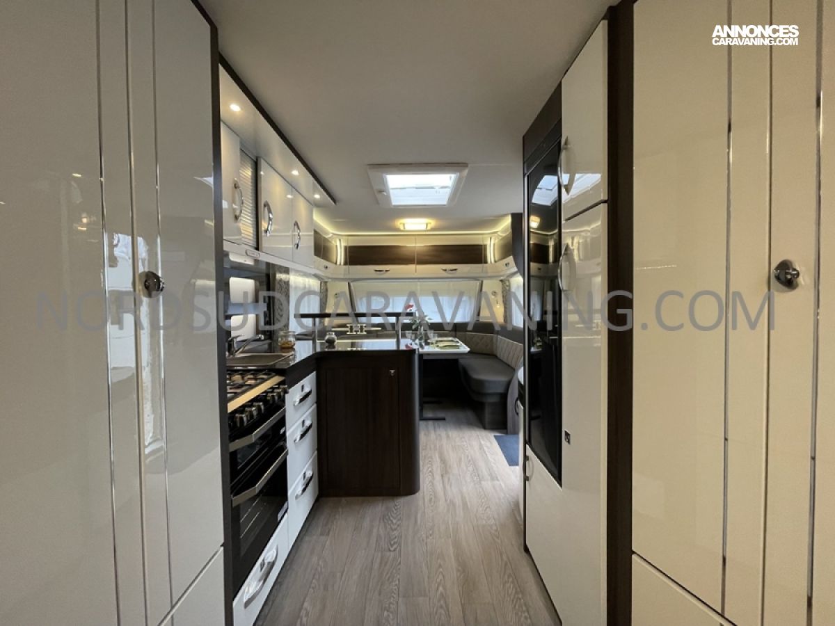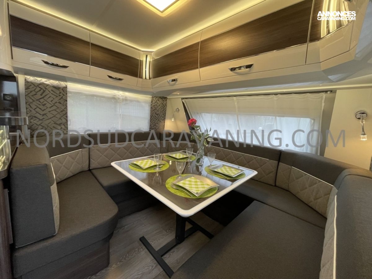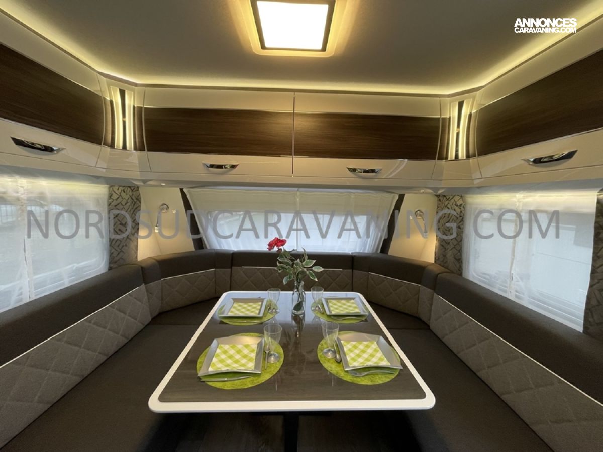 Nouveauté 2025, Caravane haut de gamme HOBBY Prestige 720 WQC, Double essieux, Spacieuse, Lit central, Salon en U, Douche indépendante, Tout confort...