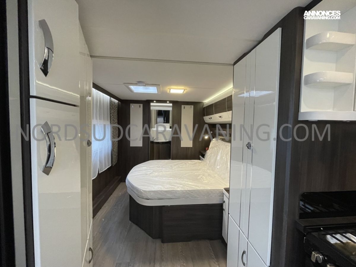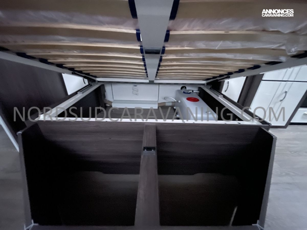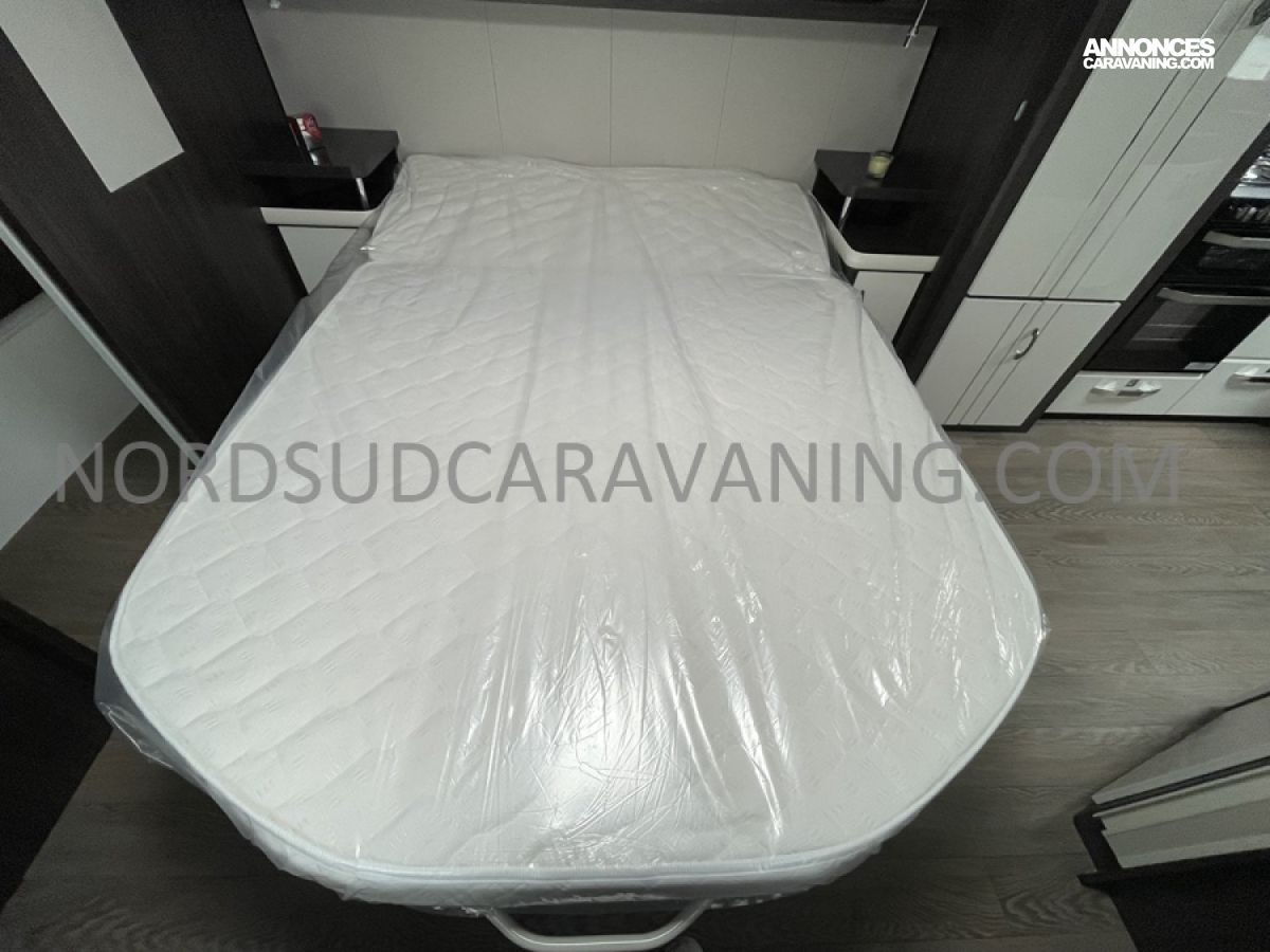 Cette caravane allie place, confort et rangements. Son lit central est confortable et facilement accessible et vous disposez en outre d’un maxi salon en U transformable en couchage d’appoint. Sans oublier à l’arrière, sa salle de bain spacieuse avec cabine de douche séparée, Lavabo et WC à cassette.