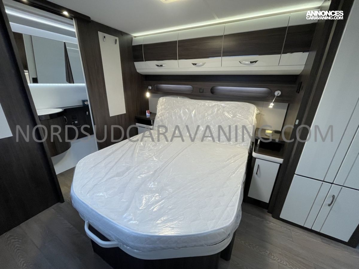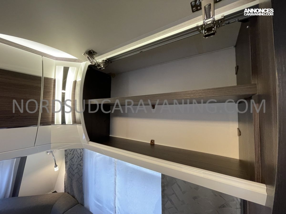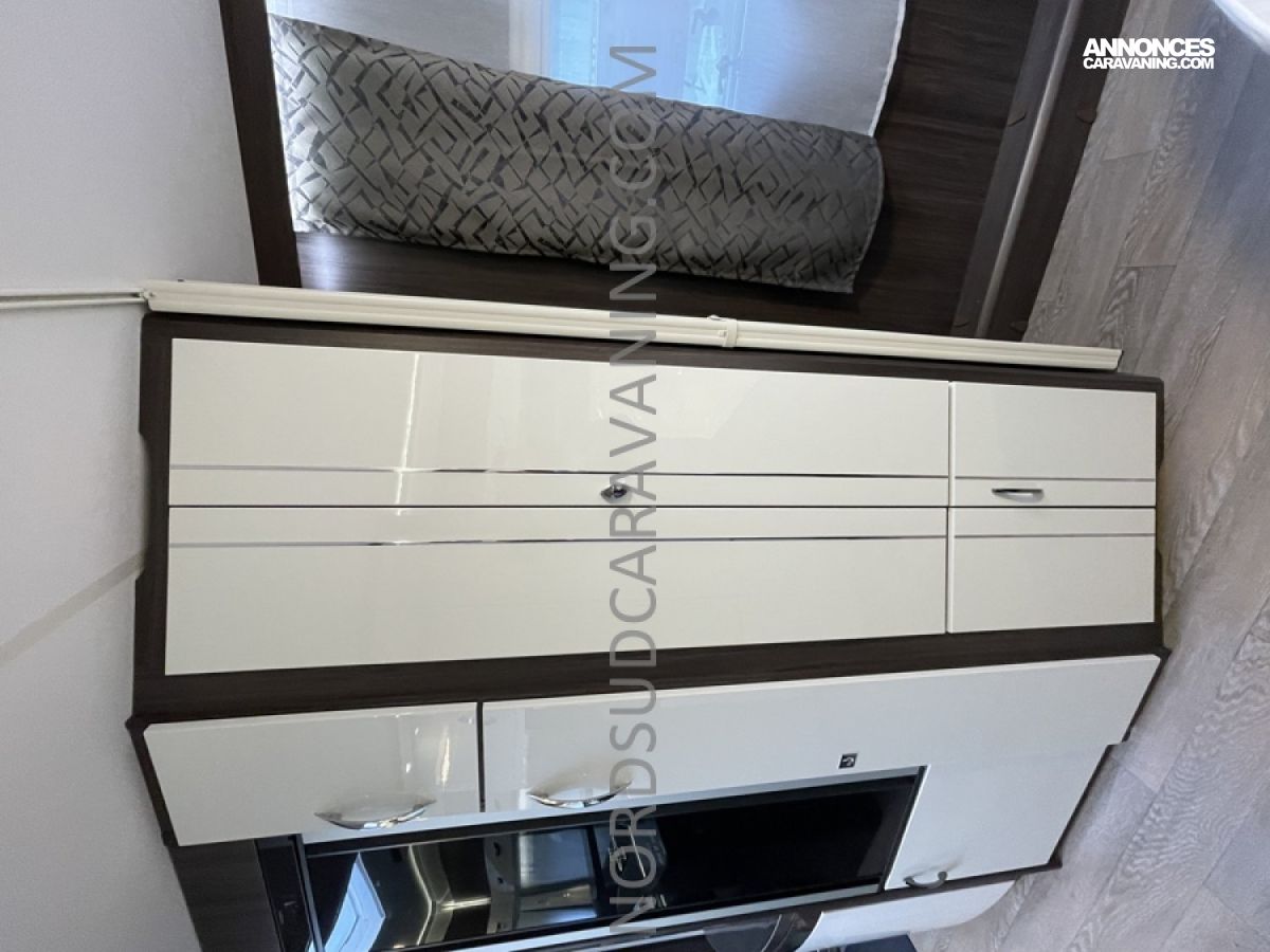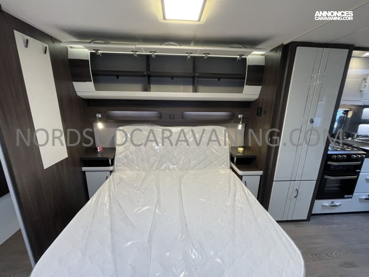 Cette caravane allie place, confort et rangements. Son lit central est confortable et facilement accessible et vous disposez en outre d’un maxi salon en U transformable en couchage d’appoint. Sans oublier à l’arrière, sa salle de bain spacieuse avec cabine de douche séparée, Lavabo et WC à cassette.