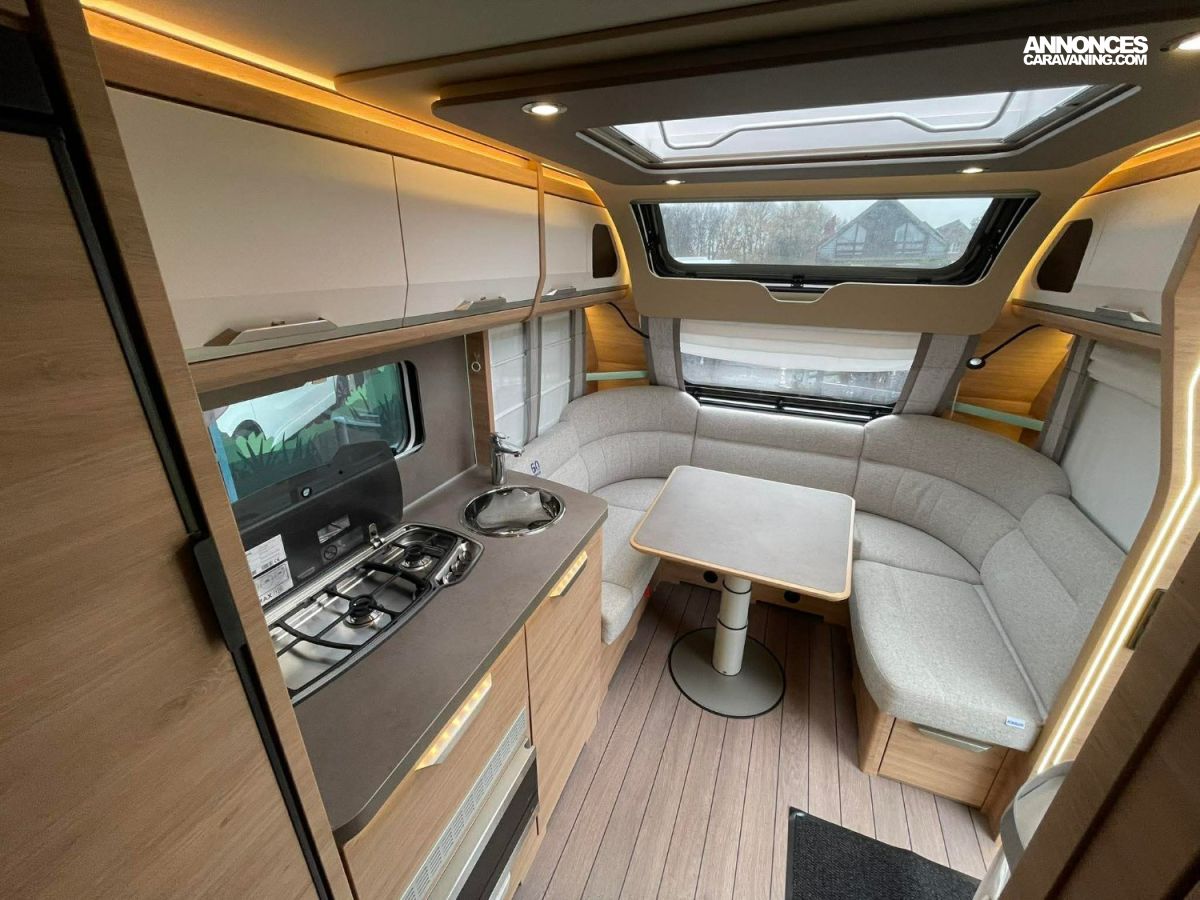 Cette configuration en fait une caravane extrêmement confortable et prête à voyager immédiatement, idéale pour les séjours prolongés en famille.