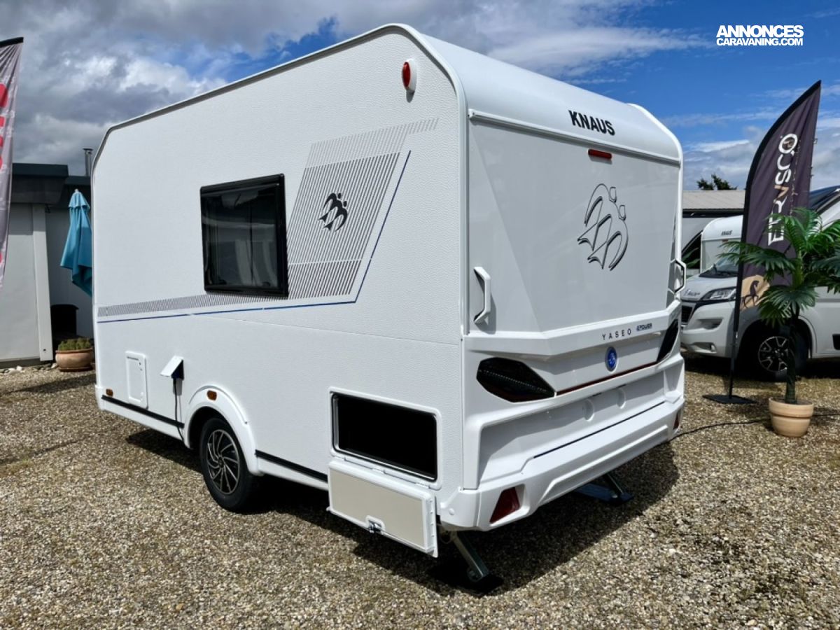 Cuisine / Salle de bain : Double plaque de cuisson à induction, Réfrigérateur 92 litres, Tringle à vêtements pliable dans les toilettes ou la douche KNAUS, robinet d'évier, Toilette à cassette DOMETIC.