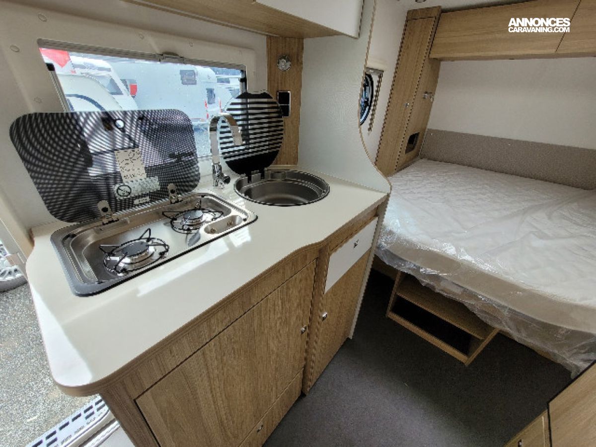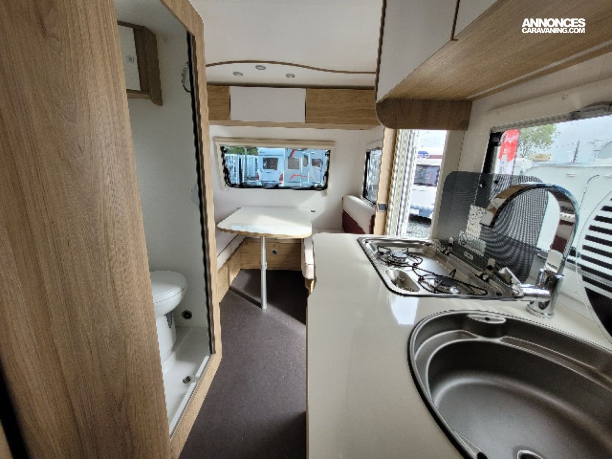 AMORTISSEURS, ANTI LACETS, BATTERIE, EAU USEE SOUS PLANCHER, RECHAUD 2 FEUX, REFRIGERATEUR ELECTRIQUE 85L, EQUIPEMENT DOUCHE, JANTES ALU, ECLAIRAGE EXTERIEUR, CHAUFFAGE TRUMA COMBI 4, CUVE INOX, WC A CASSETTE