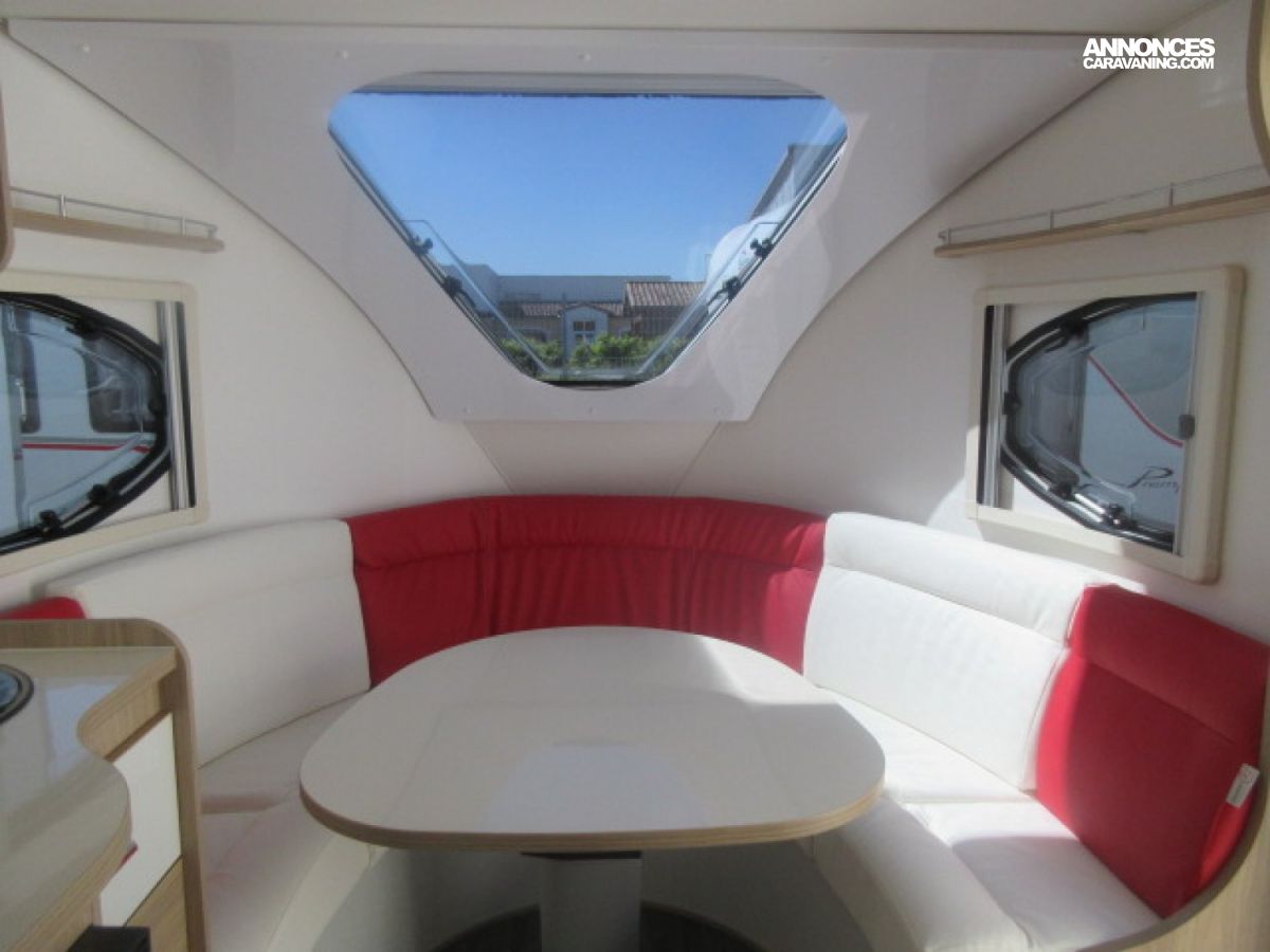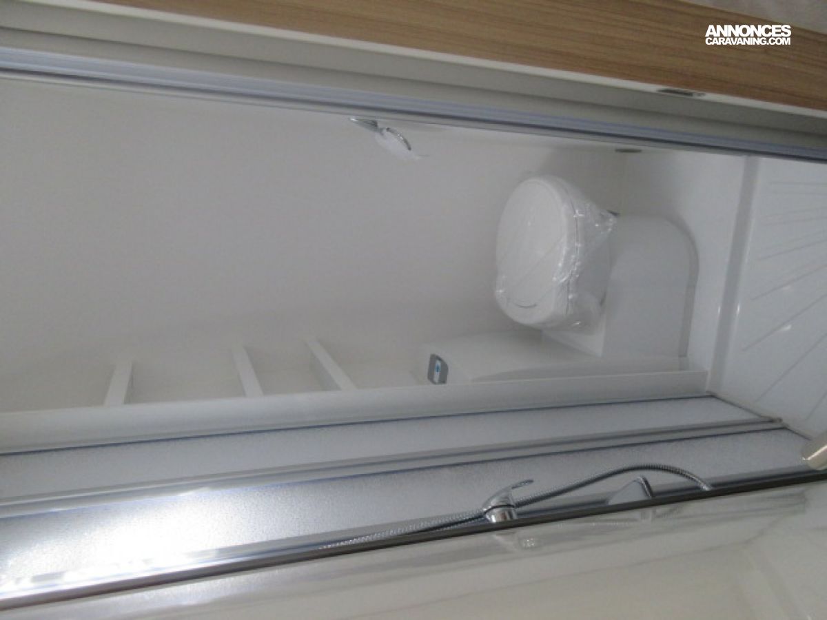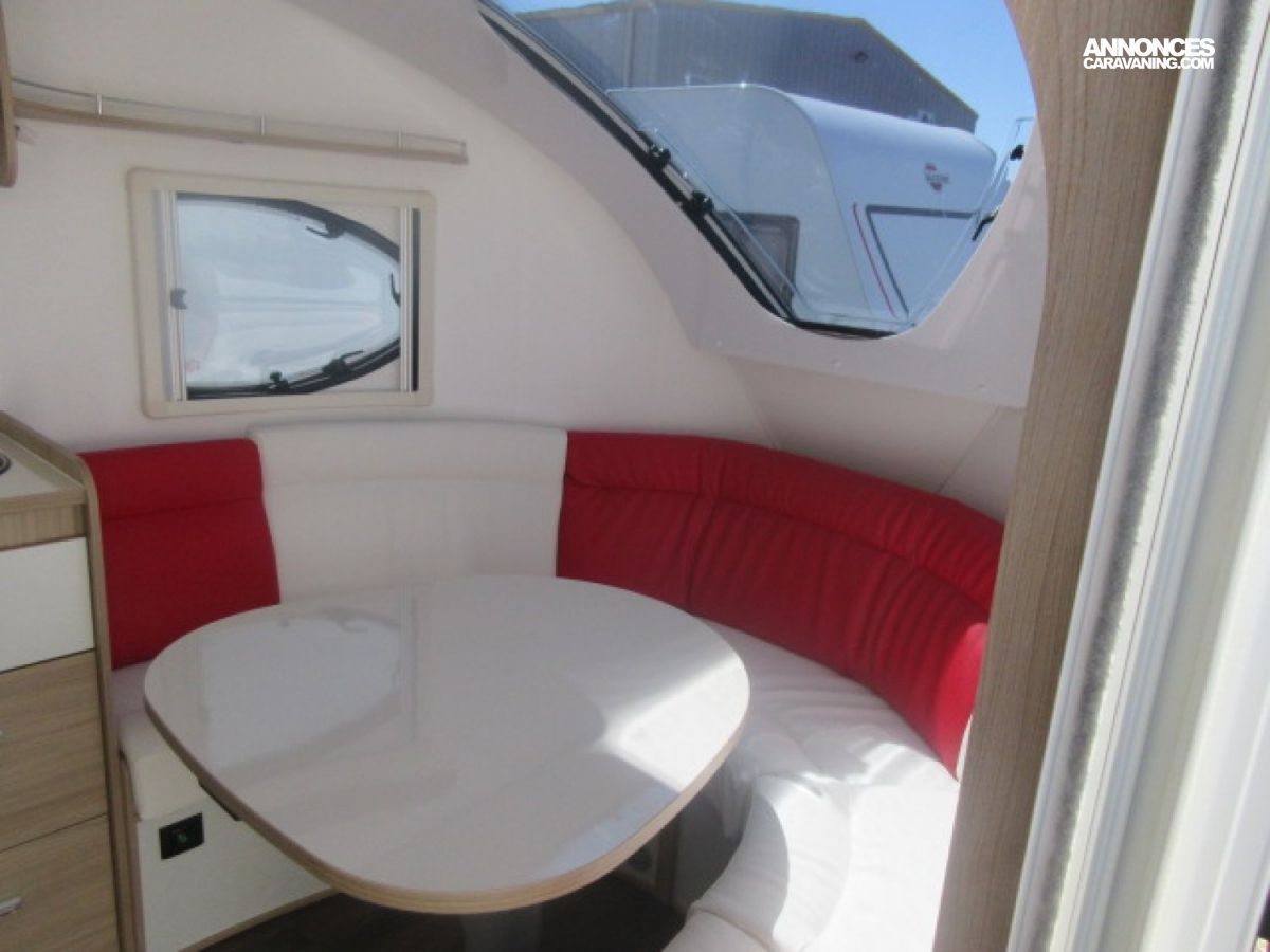 Amortisseurs ALKO, Anti-lacets AKS 3004, Vérins renforcés ALKO, Cache flèche, Roues jante aluminium, Toit anti-grele polyester, Plancher polyester, Table de cuisson 2 feux et cuve inox, Hotte aspirante, Réfrigérateur à compression 83 L, WC à cassette pivotant électrique, Douche indépendante, Dimensions lit permanent : 140 x 200 cm, Dimensions dinette : 150 x 214 cm, Sommier à lattes avec ouverture par vérins, Réservoir d'eaux propres 45 L, Réservoir d'eaux usées amovibles 30 L, Chauffe-eau Truma Therme 5 L + mitigeur