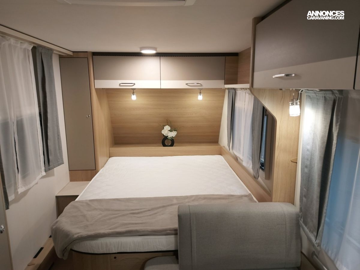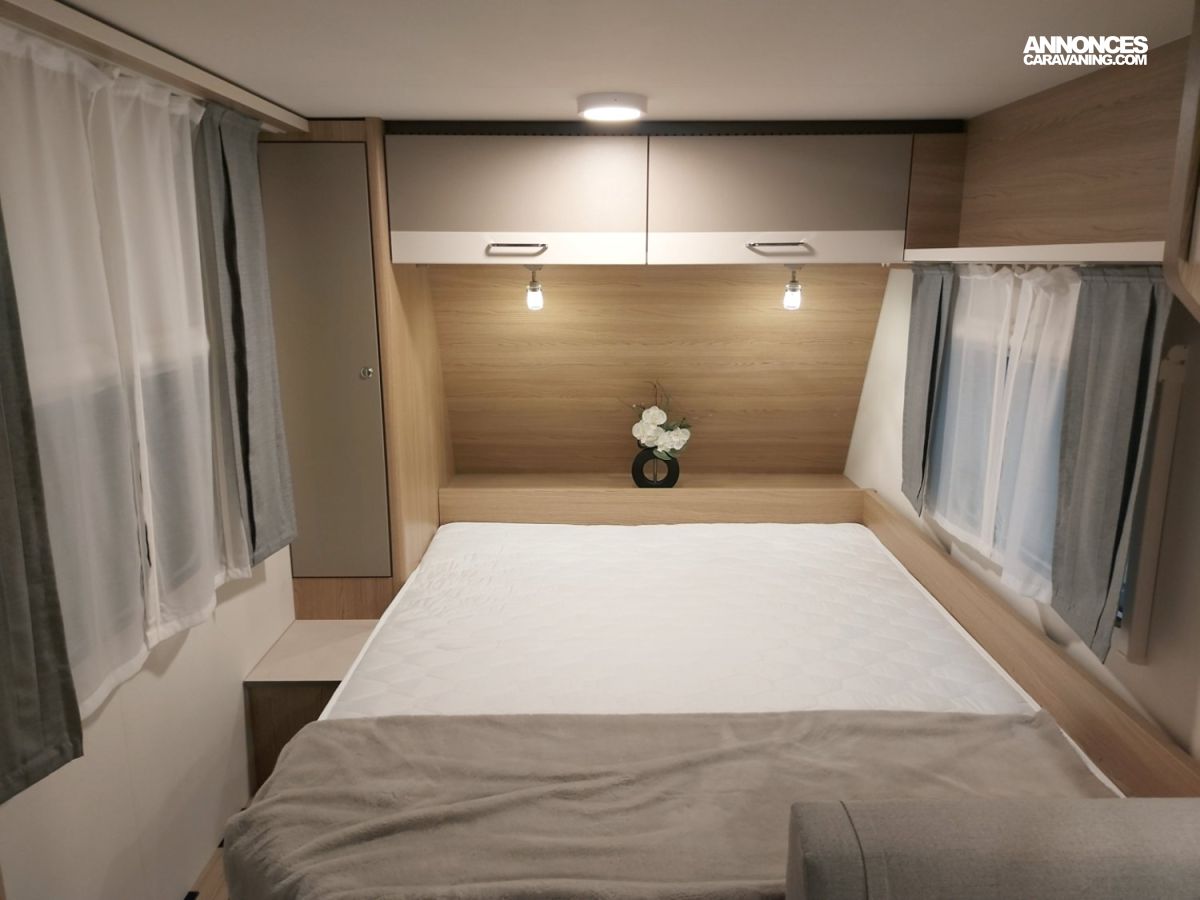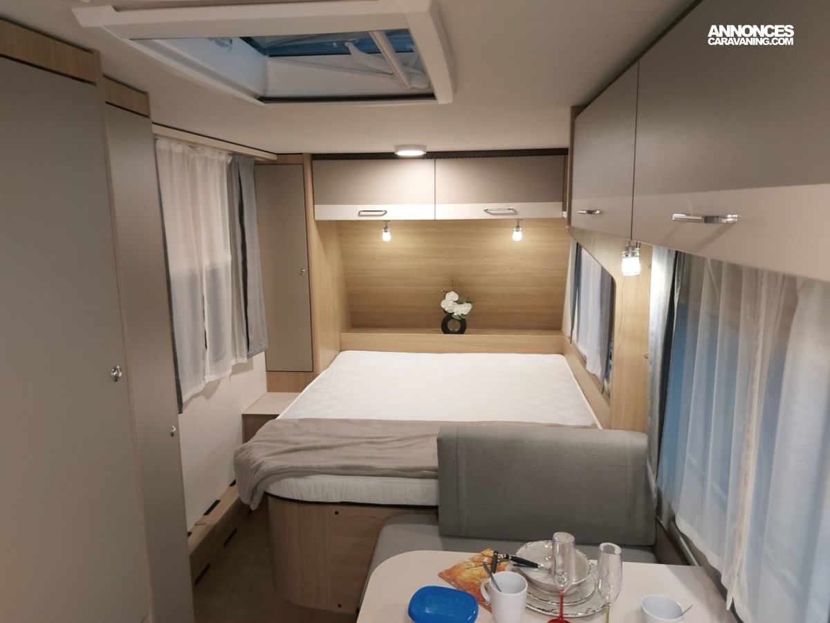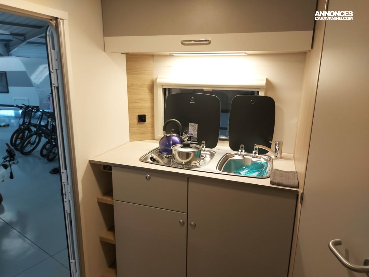 Belle caravane disposant d'une implantation inhabituelle sur une très faible largeur hors tout (2m10) : grand lit "à la française", cuisine située à l'arrière, grand réfrigérateur, cabinet de toilette dotée d'une douche, Nombreux rangements, excellent niveau d'équipements. Garantie étanchéité de 12 ans.