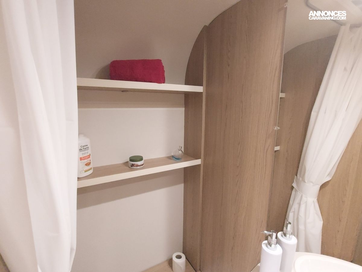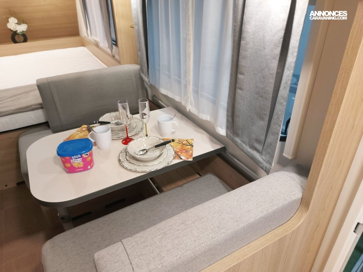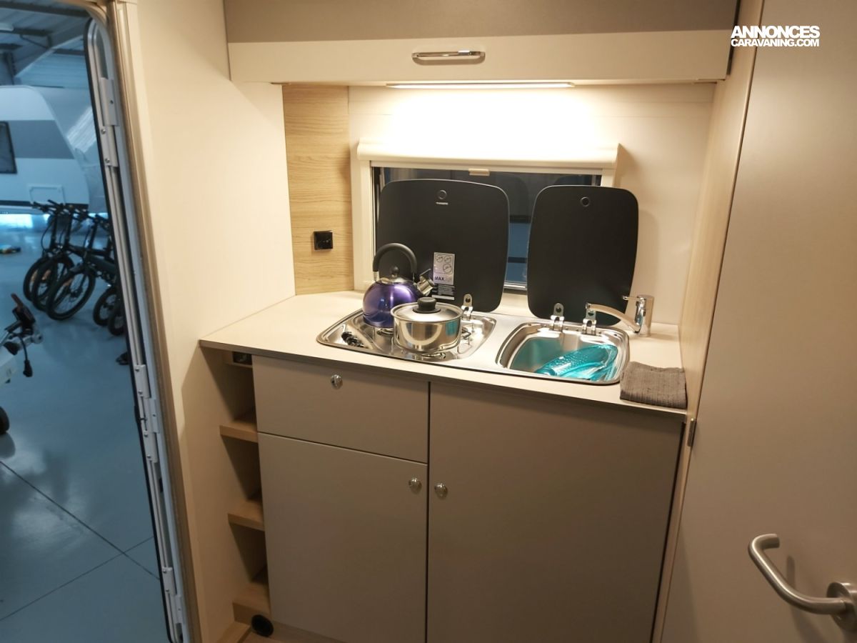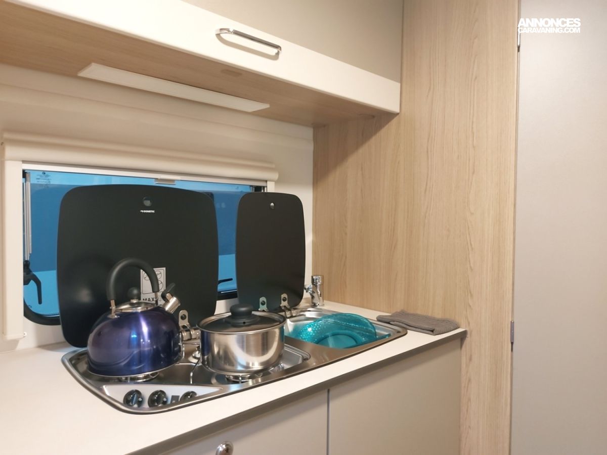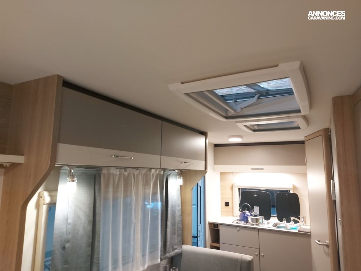 Belle caravane disposant d'une implantation inhabituelle sur une très faible largeur hors tout (2m10) : grand lit "à la française", cuisine située à l'arrière, grand réfrigérateur, cabinet de toilette dotée d'une douche, Nombreux rangements, excellent niveau d'équipements. Garantie étanchéité de 12 ans.