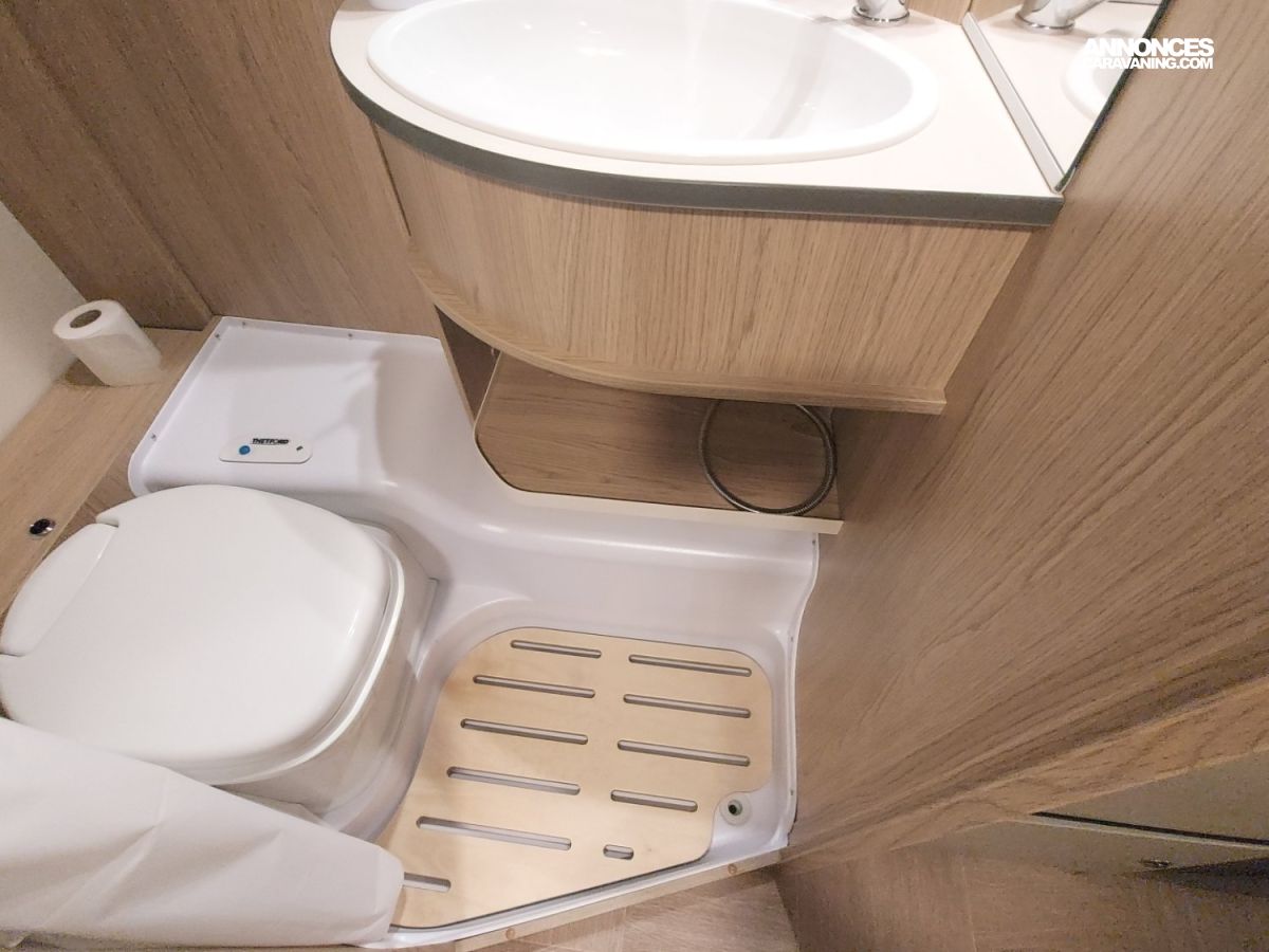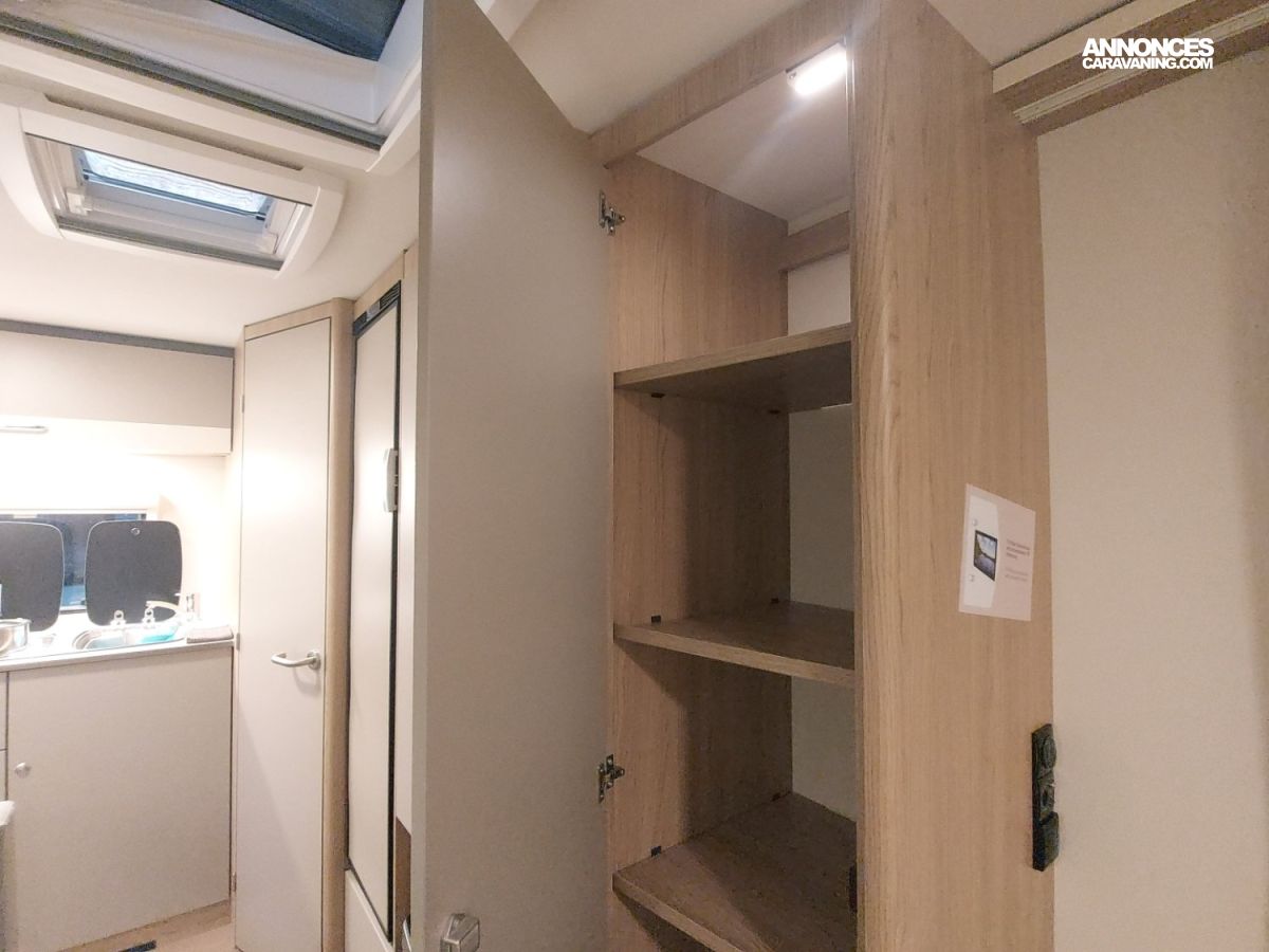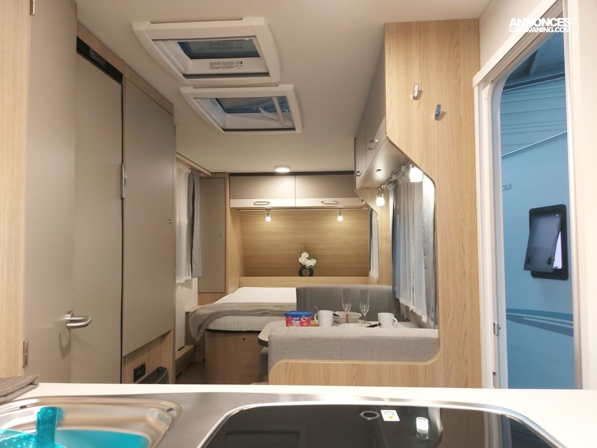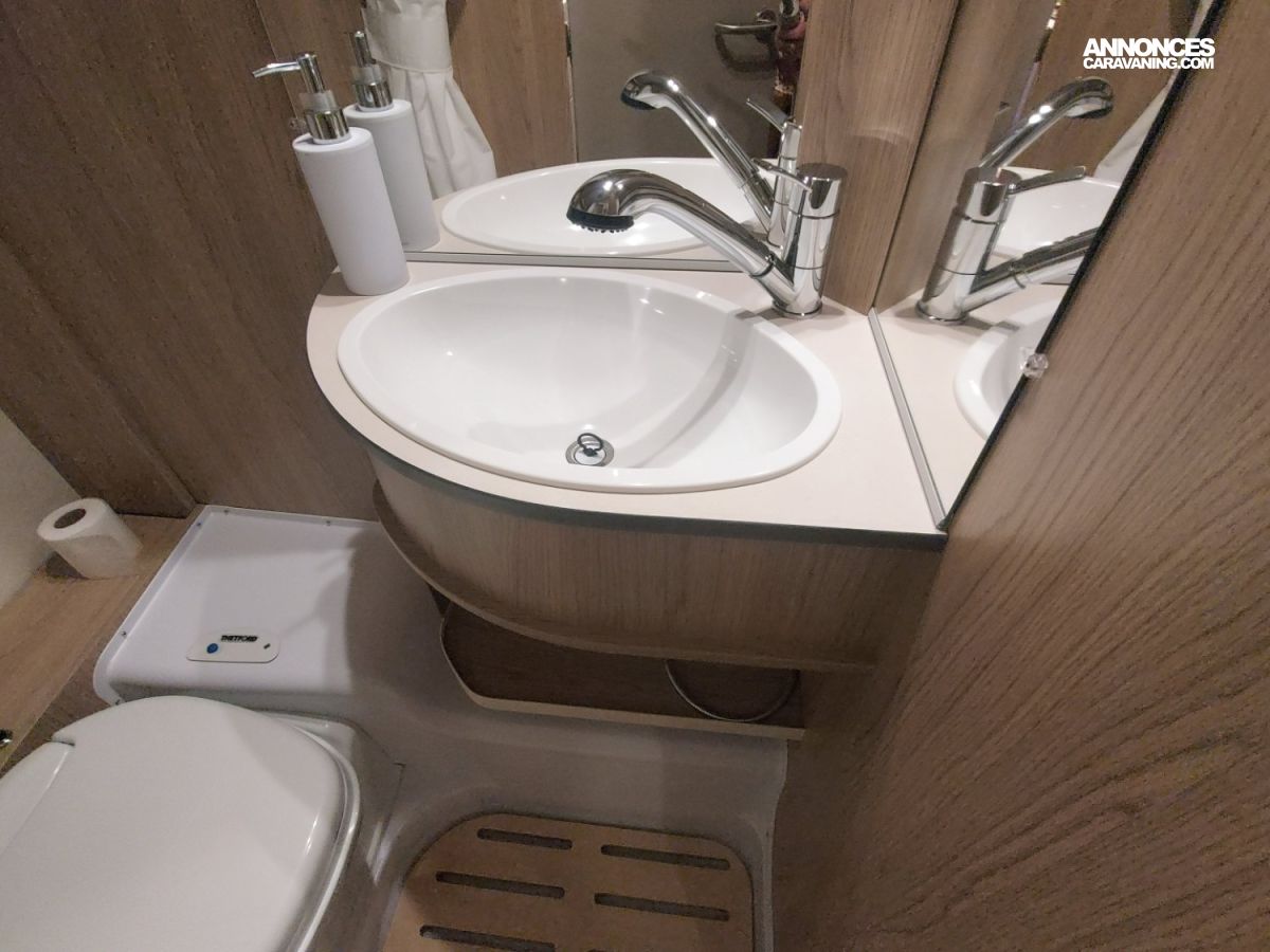 Belle caravane disposant d'une implantation inhabituelle sur une très faible largeur hors tout (2m10) : grand lit "à la française", cuisine située à l'arrière, grand réfrigérateur, cabinet de toilette dotée d'une douche, Nombreux rangements, excellent niveau d'équipements. Garantie étanchéité de 12 ans.