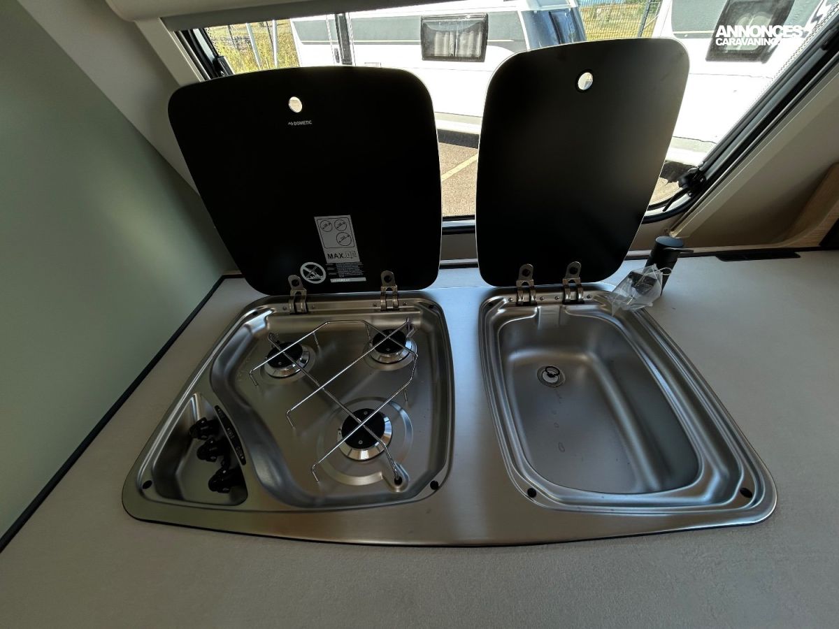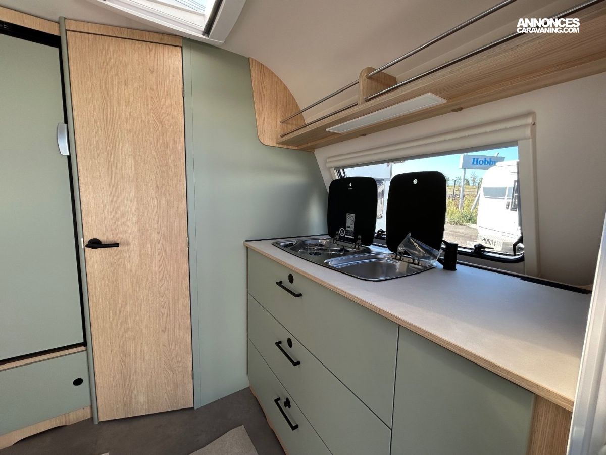 Découvrez cette magnifique caravane LMC Style 400 F, modèle 2024, alliant élégance moderne et confort. Sa décoration en chêne associée à un vert sauge doux et un sol effet béton lui confère un style scandinave charmant, tout en offrant une ambiance chaleureuse et pratique pour vos voyages.