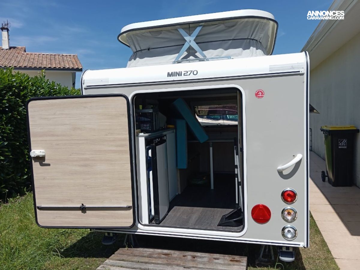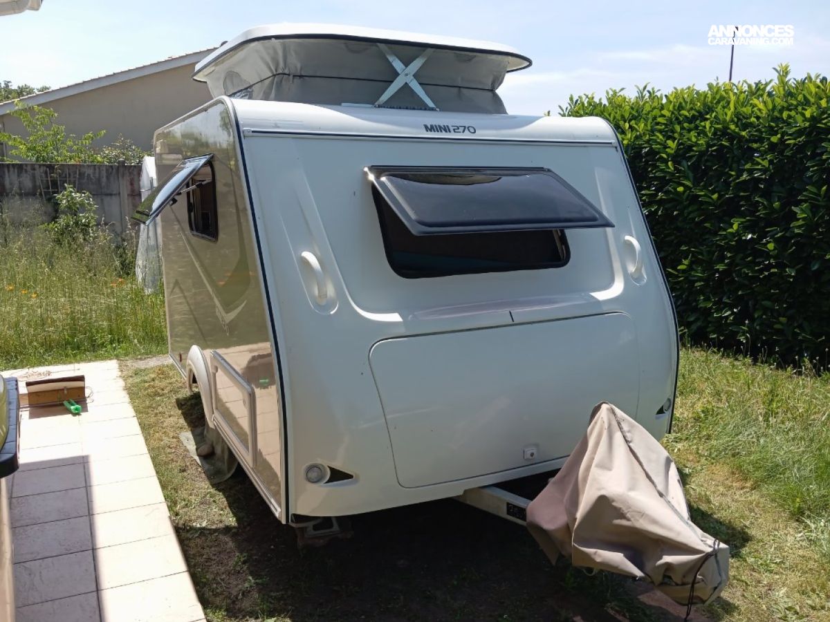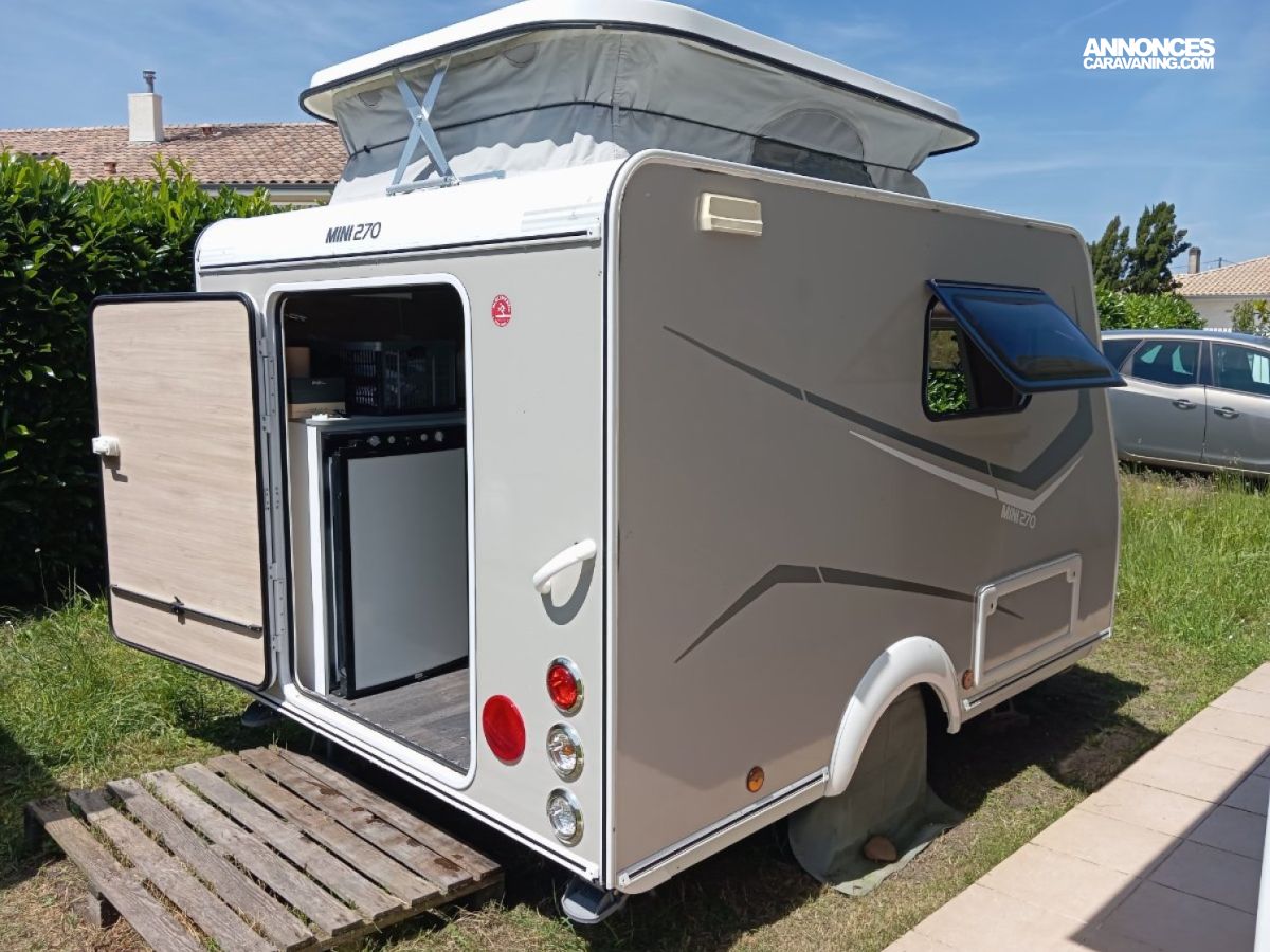 Nous vendons à regret notre caravane Mini Freestyle 270 pour un nouveau projet .Une caravane tout en 1 avec de nombreux avantages : facile à tracter, avec un toit relevable, rigide et design. De marque et fabrication française (Groupe TRIGANO). Elle a de nombreux atouts : possibilité de stockage dans un garage domestique, conduite aisée, itinérante, consommation de carburant réduite, hauteur inférieure à 2 m (absence de majoration de péage sur les autoroutes), des volumes rationnels, des poids légers. sa conception : carrosserie en polyester (plus résistant aux intempéries et impacts), ventilation naturelle grâce à la réhausse en toile, réfrigérateur tri mixte (gaz, 12V ou 230V). Caractéristiques : grande porte d'entrée à l'arrière, toit en polyester renforcé, amortisseurs, dînette transformable en grand couchage de 140x190 cm, réfrigérateur 85 L, réchaud 2 feux inox et évier. Pré câblage antenne télé. Toilette portable Thetford Porta Potti 335. Pack primo : roue de secours et portillon extérieur.