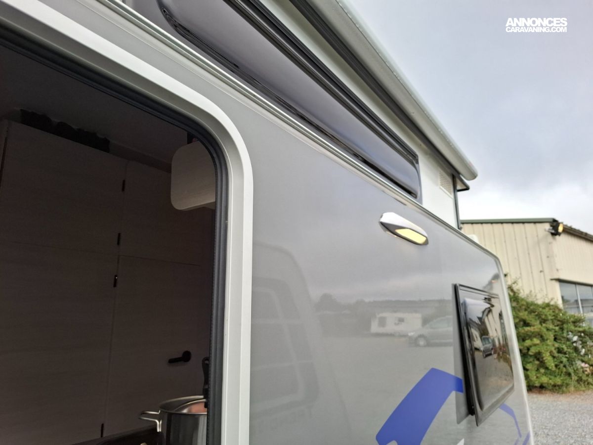 Il s'agit d'une superbe occasion, très récente et parfaitement équipée : déplace caravane, store, auvent gonflable, équipements douche, option "porte-vélos" (rallonge de chassis avec boule d'attelage pour positionner un porte-vélos sur rotule et faisceau de signalisation => ce dispositif de transport de vélos est le seul homologué par le contruscteur), équipement TV. Garantie étanchéité constructeur = 6 ans