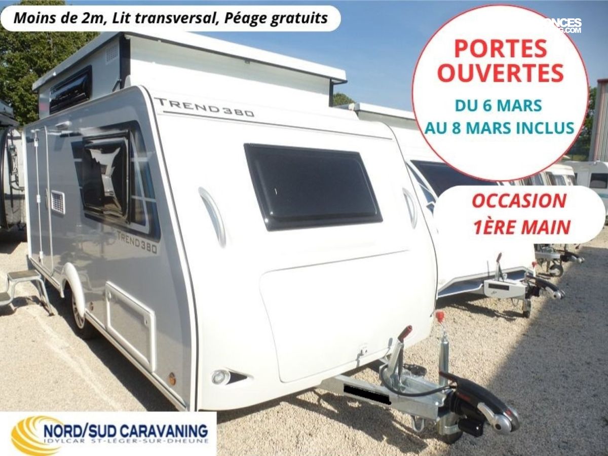 Superbe occasion Caravane surbaissée SILVER Trend 380, 1ère Main, légère, compacte, Lit transversal, Péages gratuits