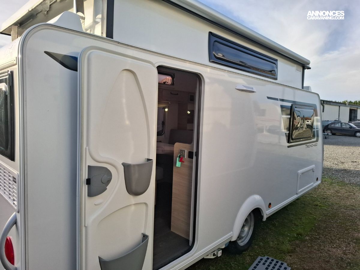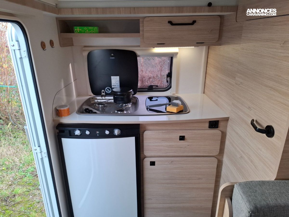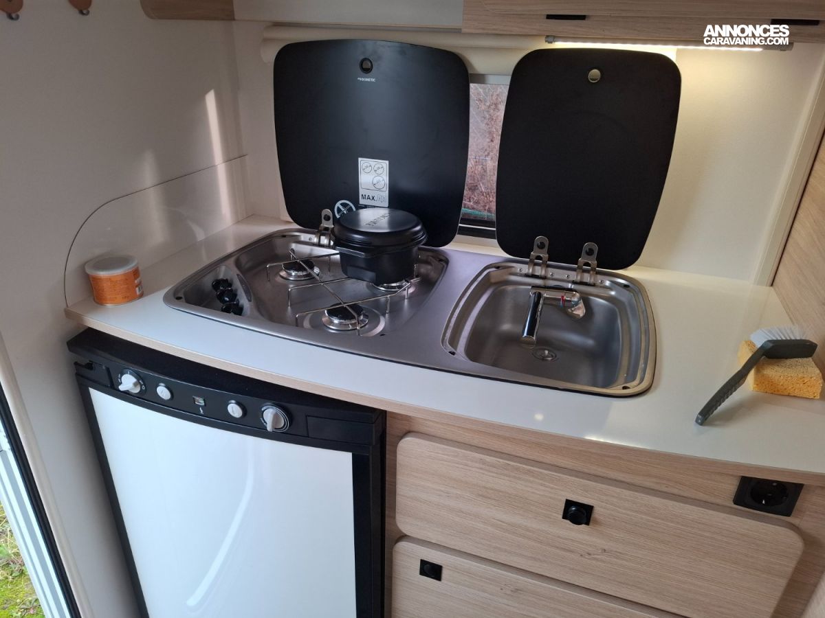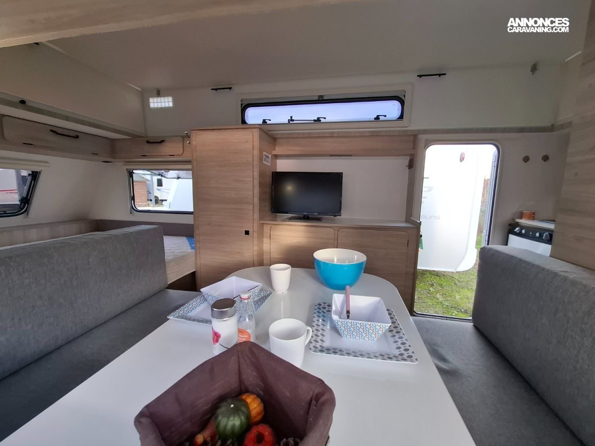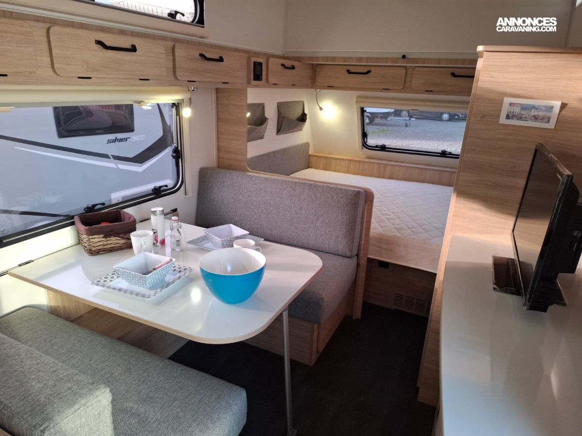 Caravane surbaissée parfaitement équipée : déplace caravane, relevage électrique du toit, équipement douche, chauffage, store avec 1 côté, porte moustiquaire. N'attendez pas pour la choisir.