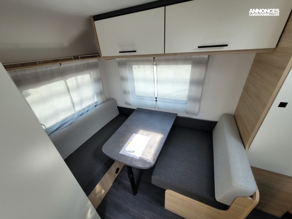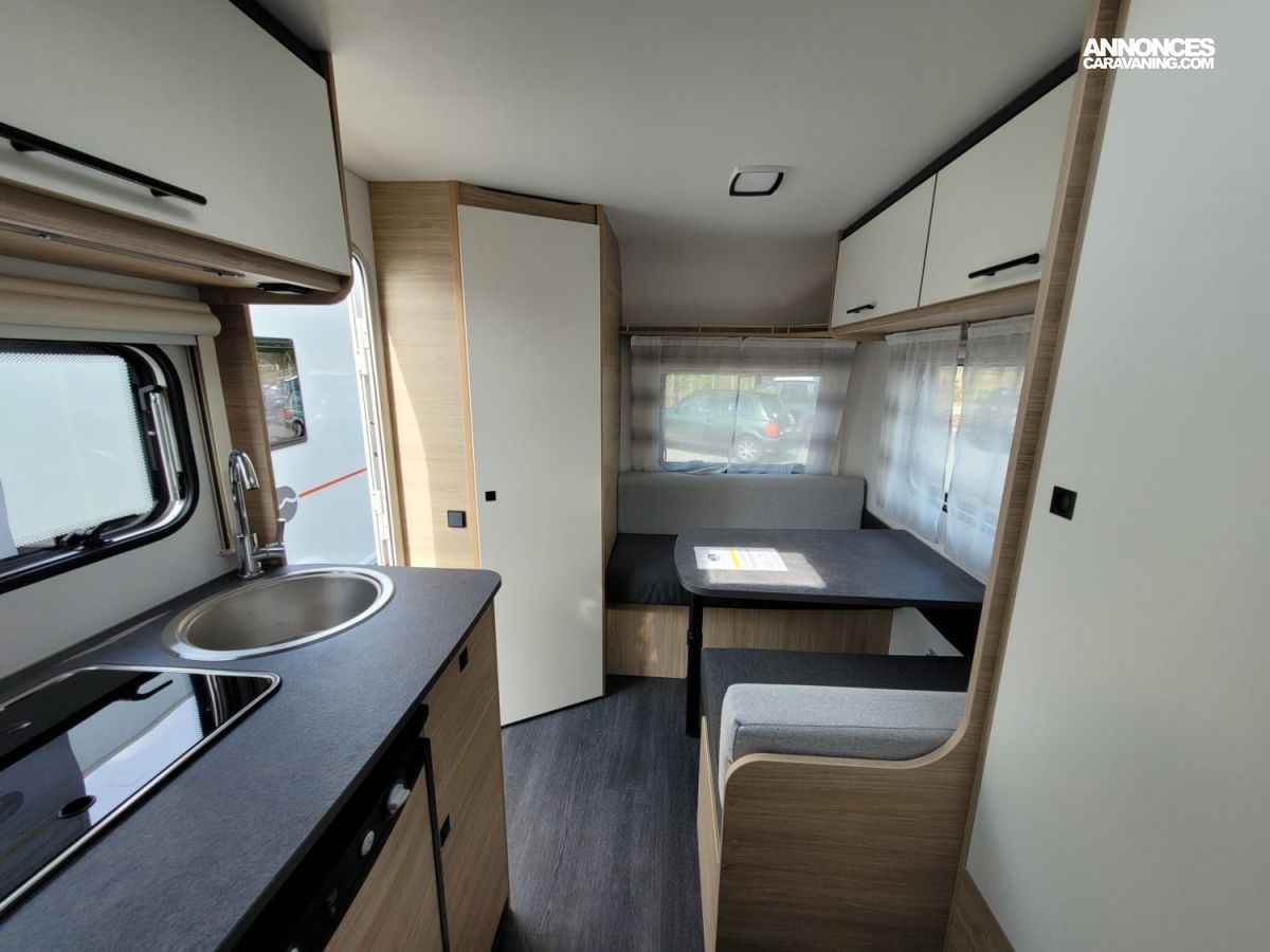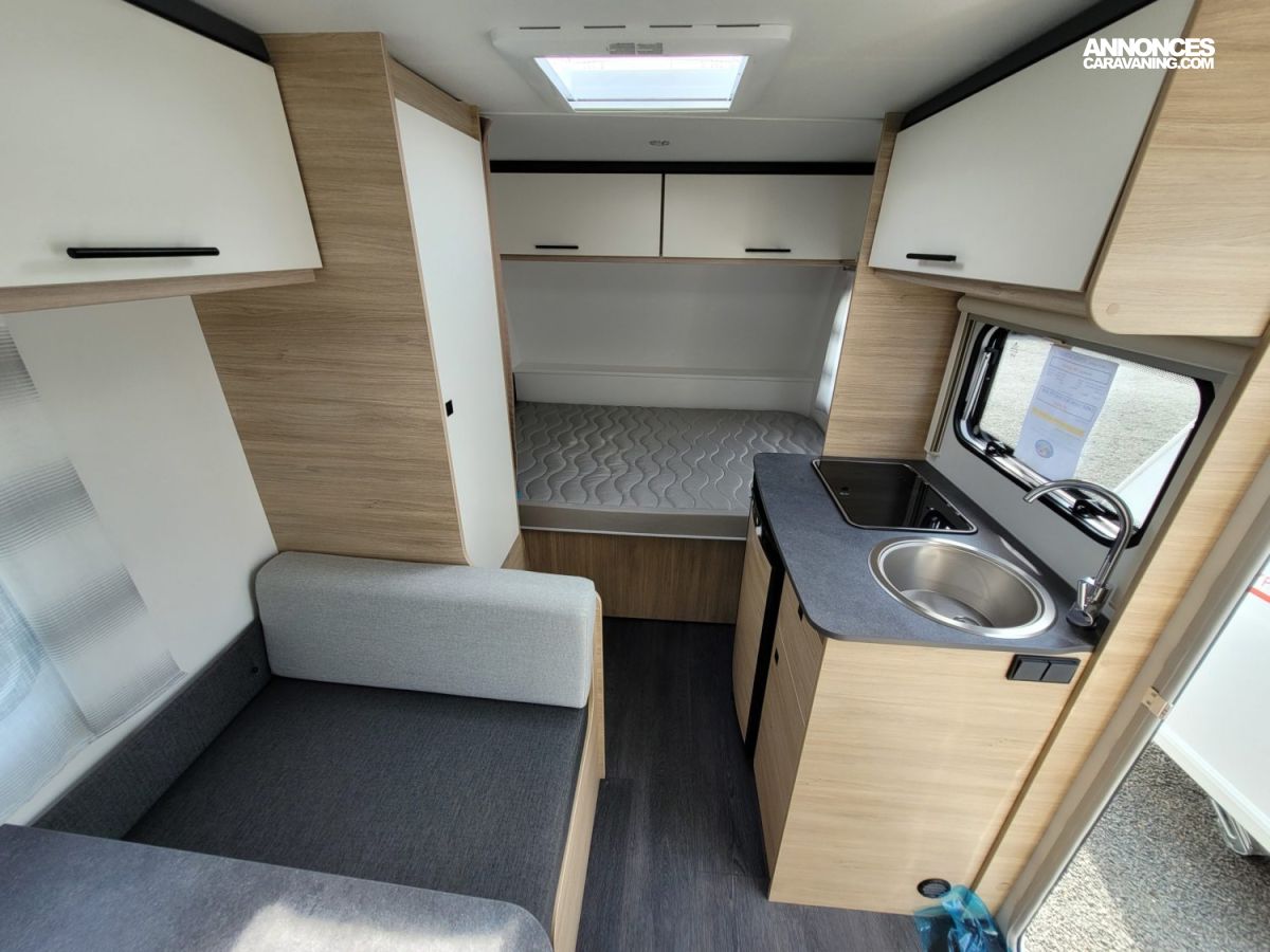 Bac de douche, Cuisine en long, Dinette arrière, Lit avant transversal, Lit dînette, WC cassette.