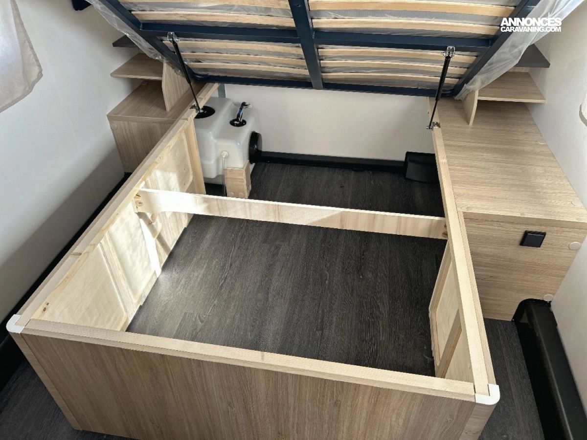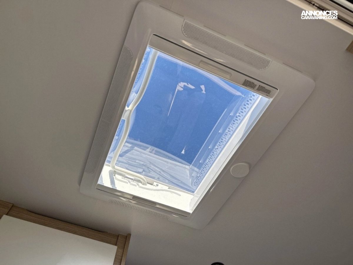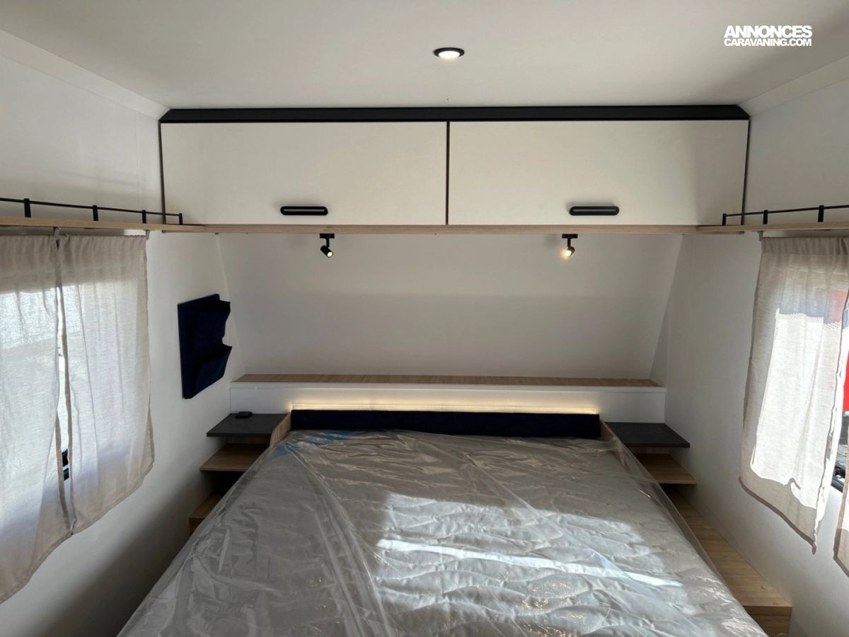 pack cosy (De série): Portillon extérieur latéral (100x40), lanterneau panoramique (70x50), matelas premium, moustiquaire, spots de lecture lit parents