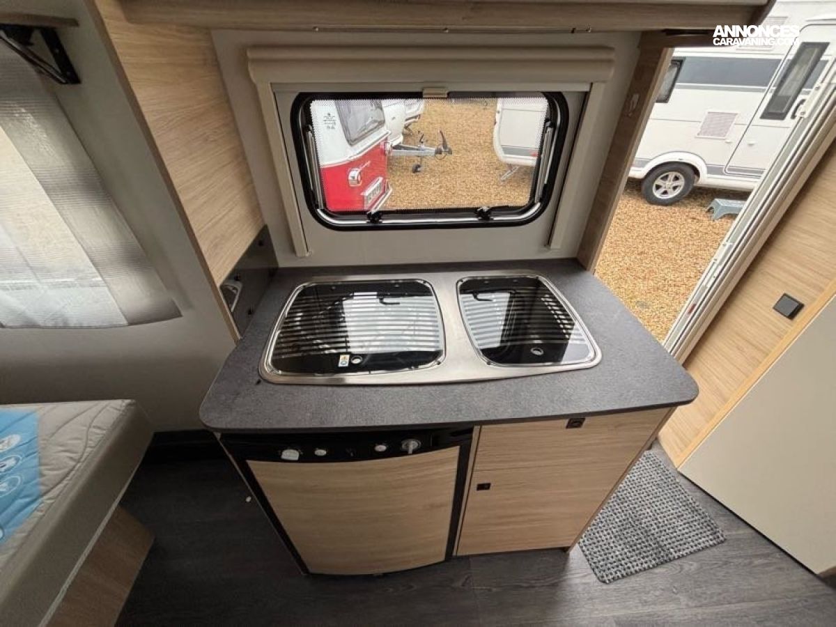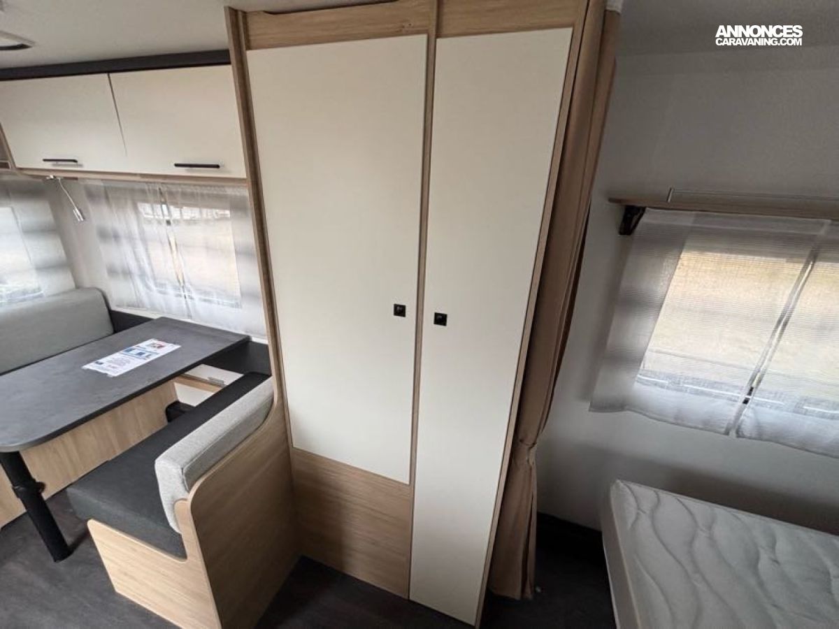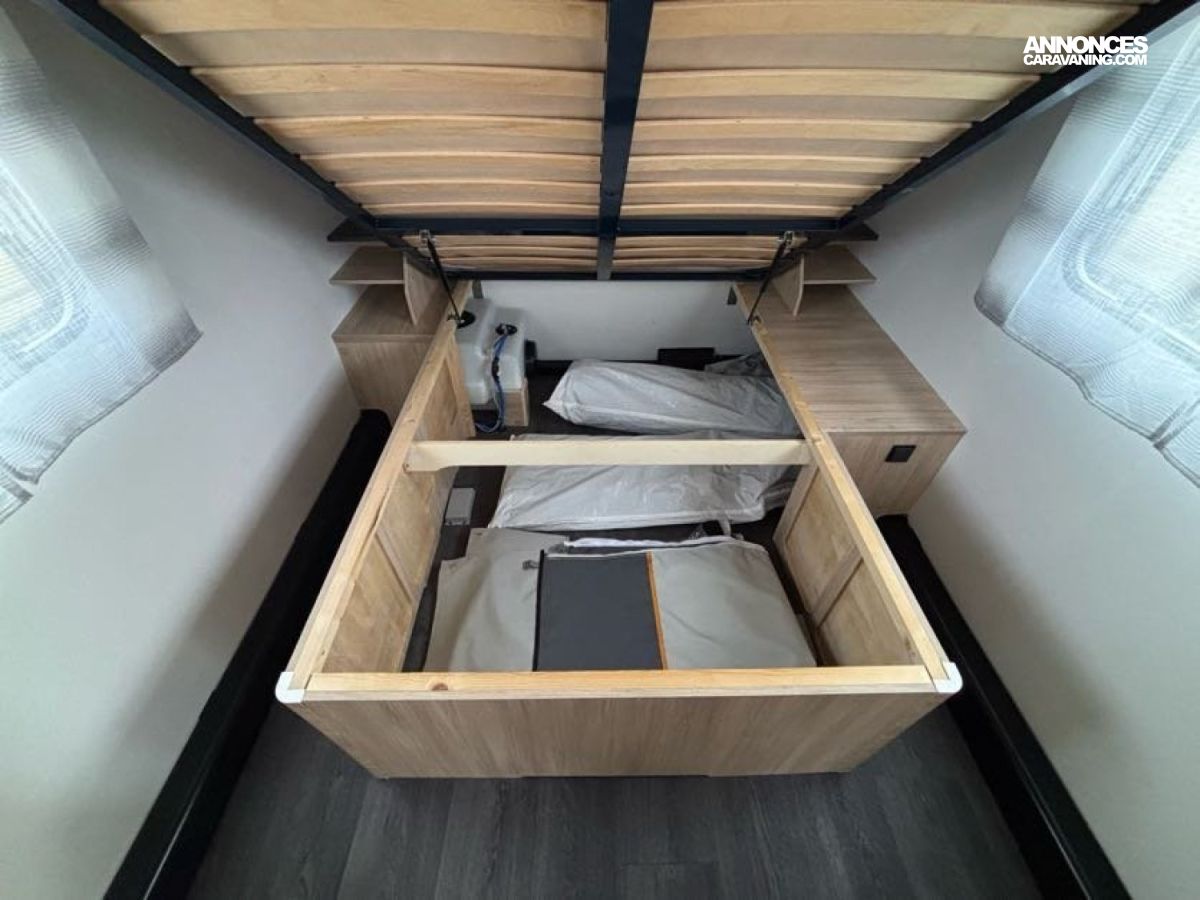 Auvent détachable / Chauffe eau TRUMATHERME / Réservoir eau propre 50 L / Eau usée 30 L / Lanterneau panoramique / Portillon extérieur / Antilacet AKS 3004 / Cassette moustiquaire baies + porte / Spots de lecture avec ports USB